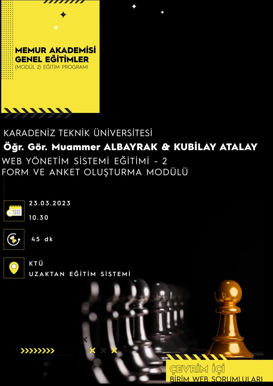 UZEM alt yapımız kullanılarak çevrim içi olarak gerçekleştirilecek olan eğitime özellikle Birim Web Sorumluları başta olmak üzere tüm personellerimiz davetlidir.