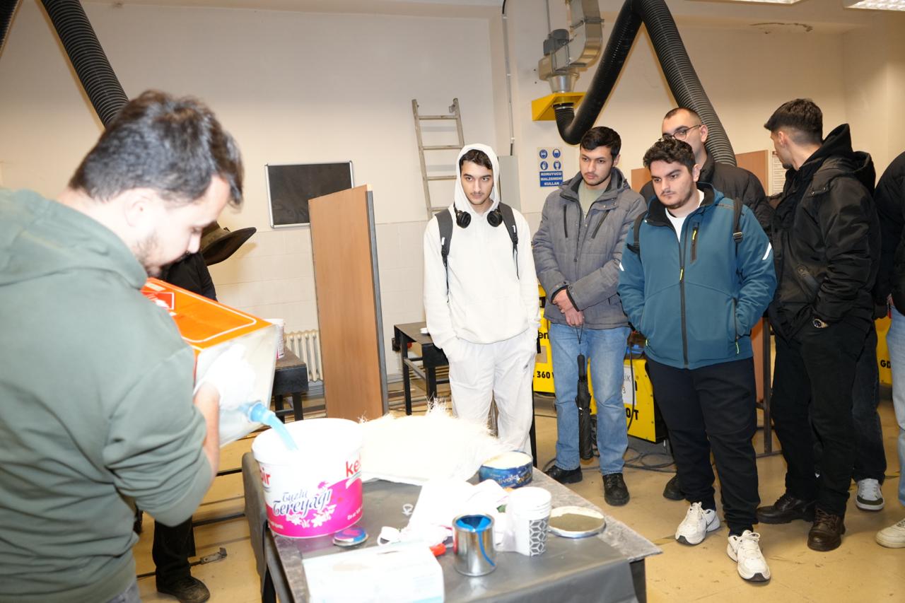 Okulumuzdaki etkinlikte Gemi İnşa bölümü öğrencileri ile birlikte epoksi sehpa ve fiber döküm işlemi yapılmıştır. Öğrencilerimize, epoksi çeşitleri, karışım oranları, bekleme süreleri ve sonrasında ürün parlatma işlemleri uygulamalı olarak gösterilmiştir.