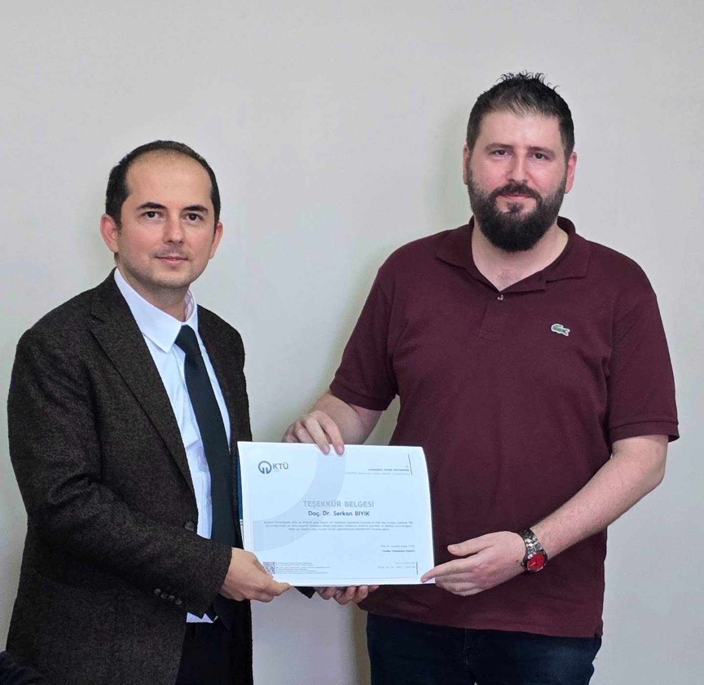 Öğretim Üyesi Doç. Dr. Serkan BIYIK Hocamıza Teşekkür Belgesi Takdimi