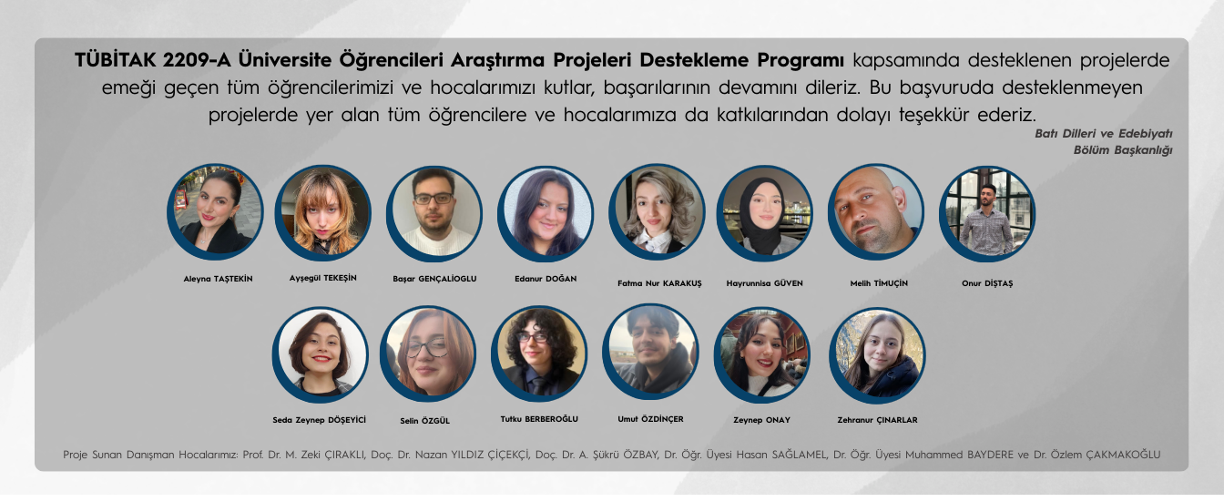 Her zaman özgün ve nitelikli işler ortaya koyacağına inandığımız bölüm mezunlarımız, Türk(çe) edebiyat ve kültür dünyasına anlamlı katkılar sunmaya devam ediyor.
