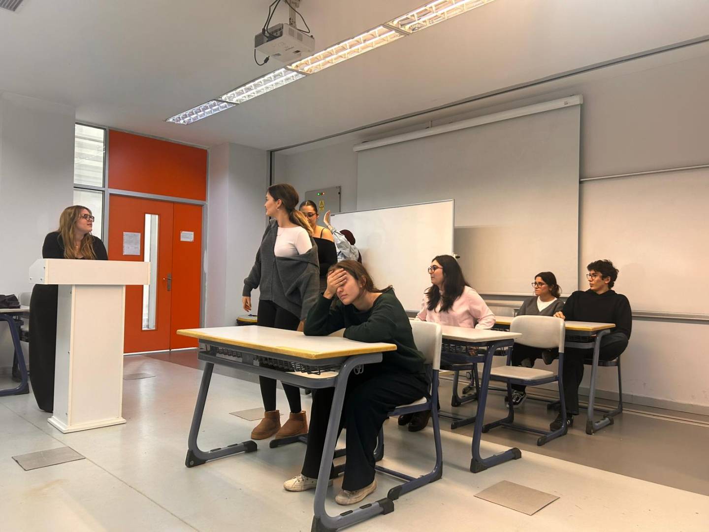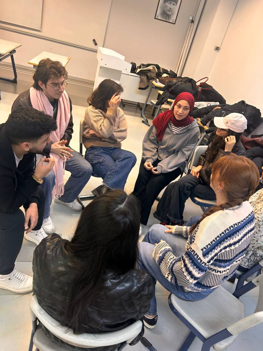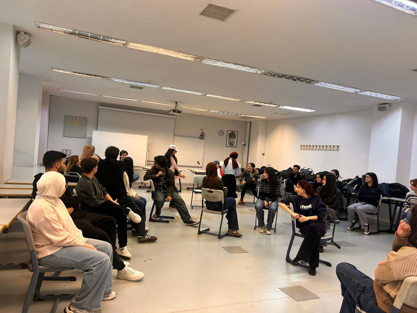 Öğretim Görevlisi Sinem ÇOL tarafından yürütülen ve Öğretim Görevlisi Saye Zibande’nin koordinasyonuyla gerçekleştirilen etkinlik süresince öğrenciler, yaratıcı drama teknikleri aracılığıyla kendilerini sözlü ve bedensel olarak ifade edebilecekleri güvenli bir öğrenme ortamında bir araya geldi.