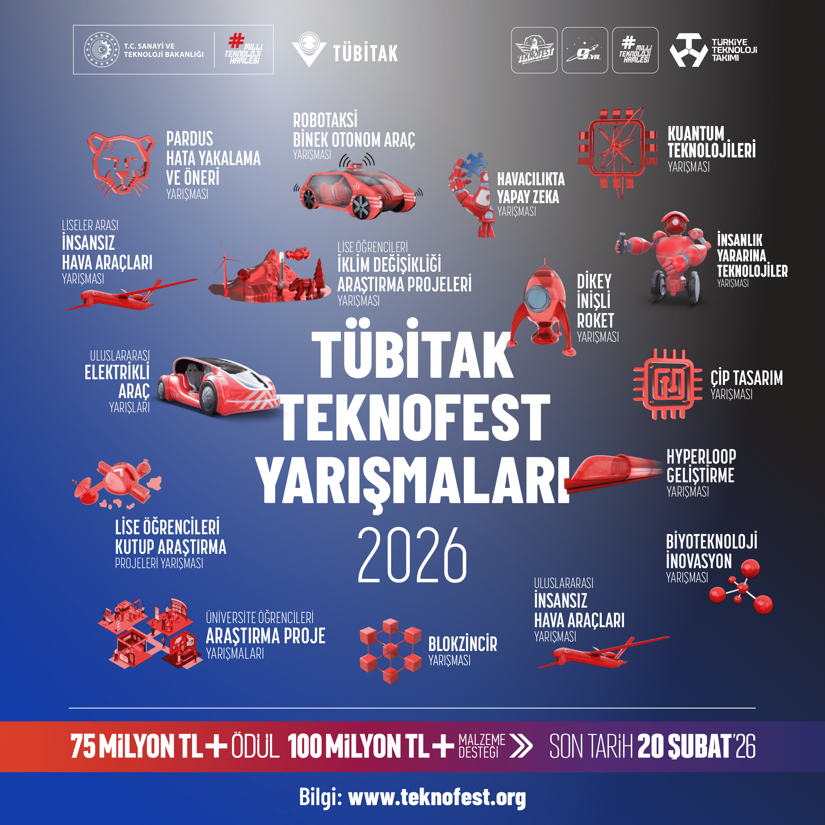 Yarışmalara katılan takımlara maddi destek sağlanmakta, başarılı bulunan takımlar ödüllendirilmektedir. Yarışmalara ilişkin detaylı bilgilere www.teknofest.org adresinden ulaşılabilmekte olup, başvurular 20 Şubat 2026 tarihine kadar devam etmektedir.