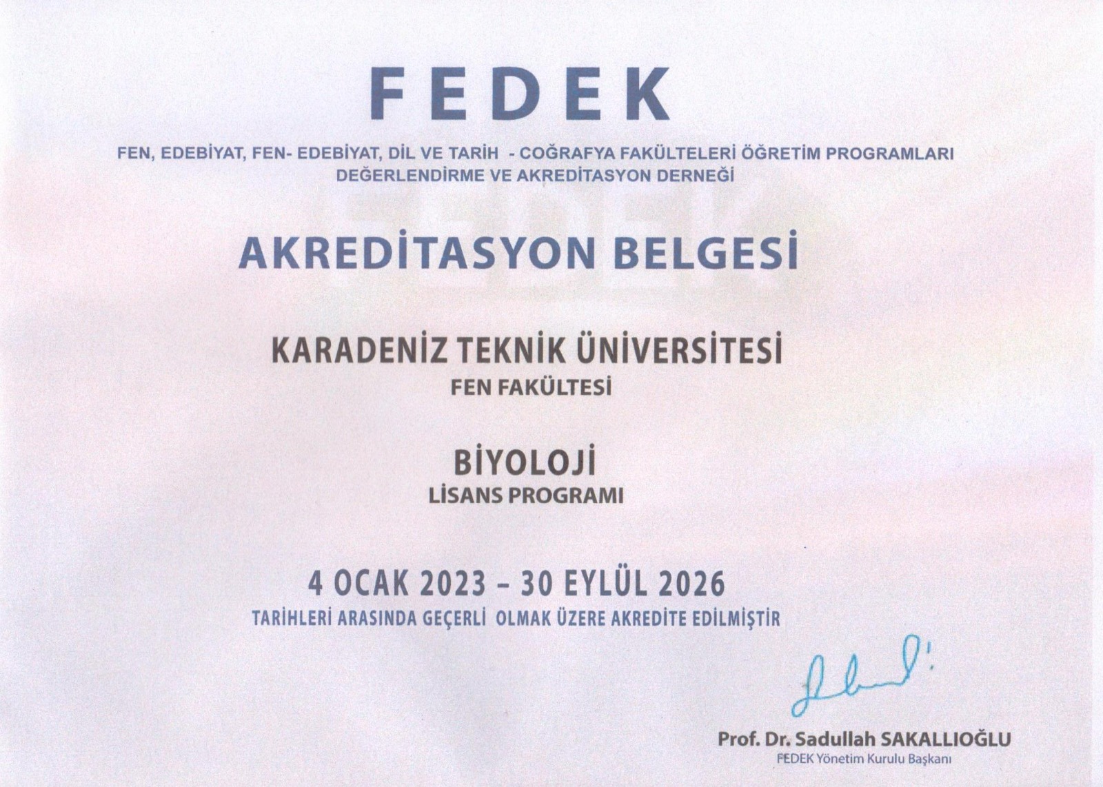 Department of History in the Faculty of Letters and Departments of Biology and Chemistry in the Faculty of Science were included in the Turkish Qualifications Framework (TQF).
