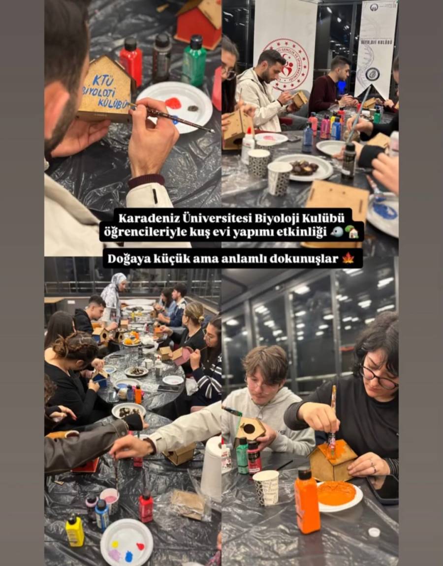 Etkinlik Şehit Eren Bülbül Gençlik merkezi teras katında düzenlendi. Etkinliğe katılım yüksek olup KTÜ Biyoloji Öğrenci klübünün düzenlediği etkinlikte boyanan kuş evleri doğaya yerleştirildi.