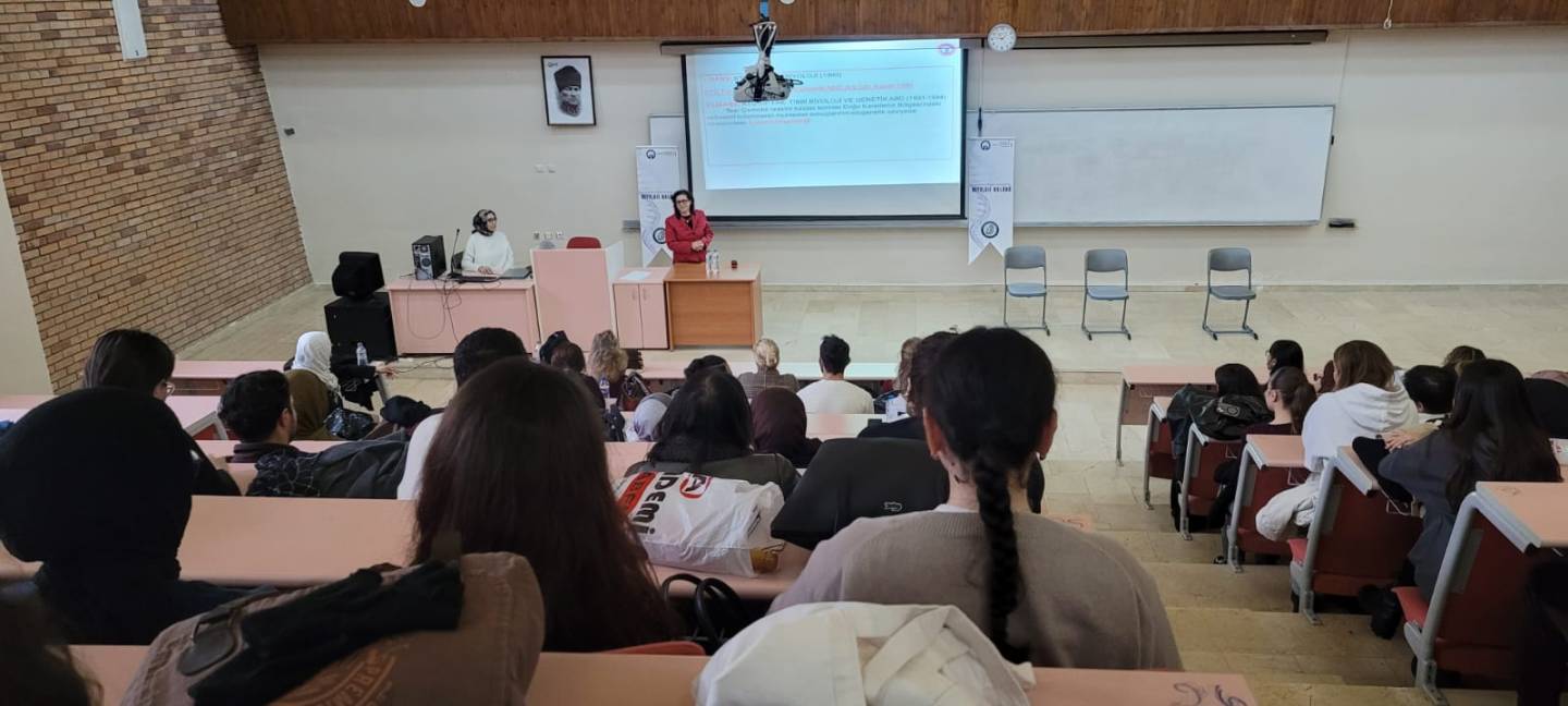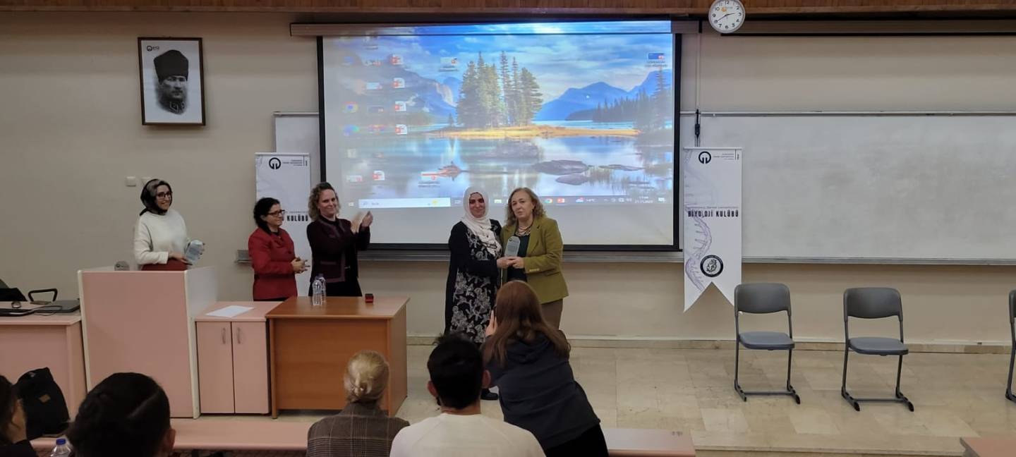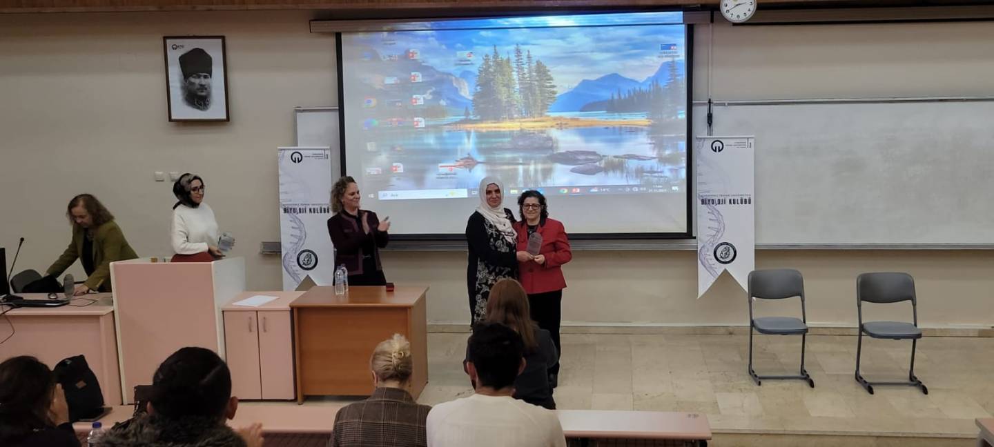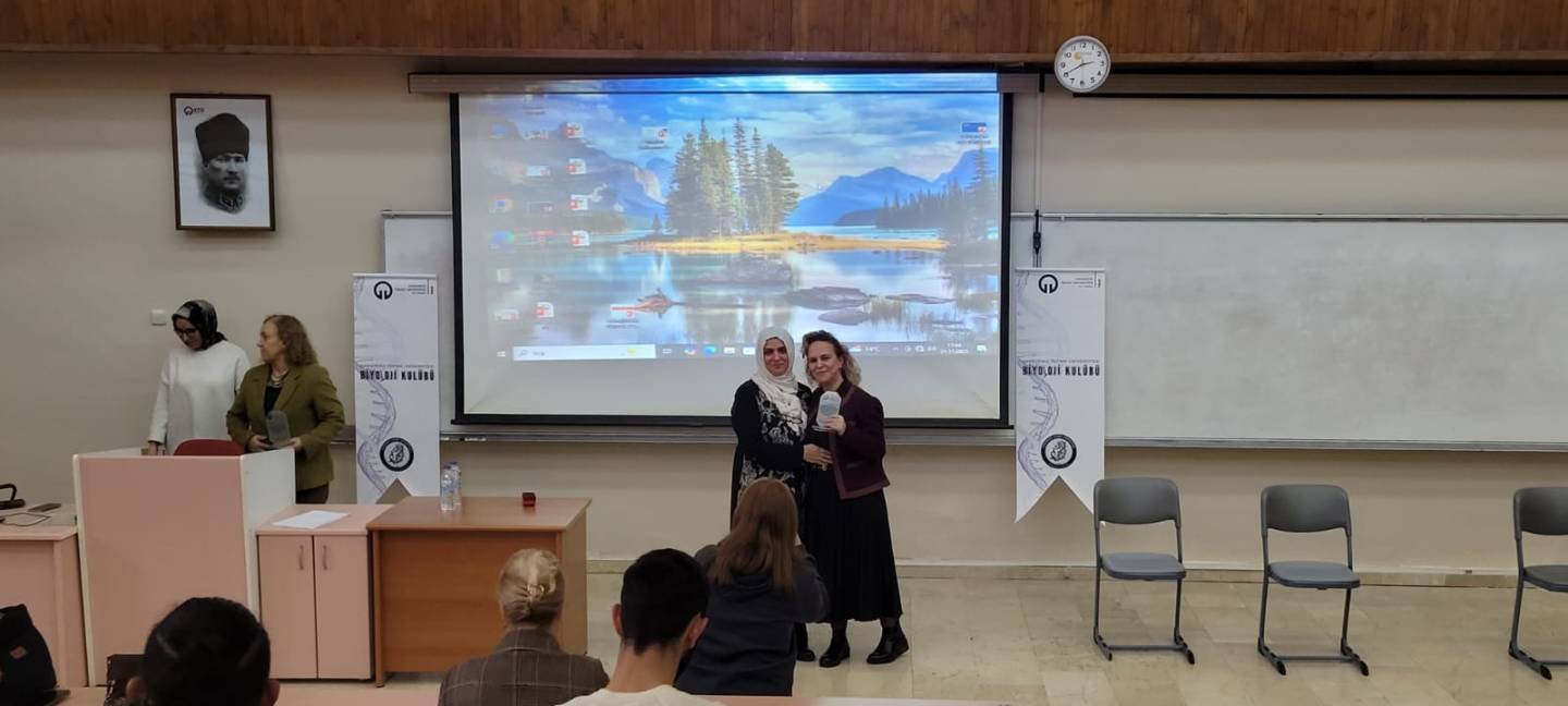 10 Aralık 2025 Fizik bölümü büyük amfide düzenlenen etkinliğe öğrencilerimizin yoğun katılım gösterdiği gözlendi. Konuşmacılarımız Prof. Dr. Şengül ALPAY KARAOĞLU, Prof. Dr. Figen CELEP KARAOĞLU ve Prof. Dr. Sema AYAZ eski bölüm mezunlarımız olarak, mezuniyet sonrasında kariyer gelişimleri için neler yaptıklarını, nasıl yollar izlediklerini, onları en çok zorlayan şeyleri ve bu zorlukların nasıl aşıldığı konularında öğrencilerimizle akademik kariyer gelişim hikayelerini paylaştılar.