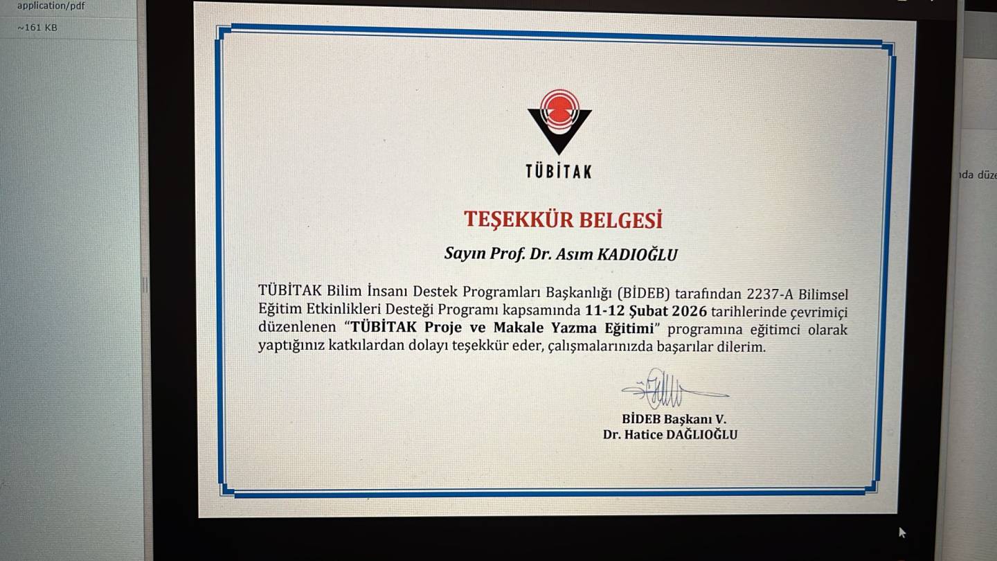 11-12 Şubat 2026 tarihlerinde düzenlenen 2237-A Eğitim Etkinliği, akademik/mesleki gelişim ve bilimsel yetkinliklerin artırılmasına yönelik önemli bir organizasyon olarak gerçekleştirildi. Etkinlikte, Asım KADİOĞLU eğitimci olarak yer alarak bilgi ve deneyimlerini katılımcılarla paylaştı.