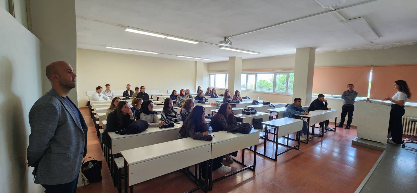 Sunumu Arş. Gör. Dr. Ayşıl Kabakçı gerçekleştirdi. Programa ayrıca Bölüm Başkanı Prof. Dr. Salih Dursun, Bölüm Başkan Yardımcıları Doç. Dr. Mustafa Şen ve Dr. Öğr. Üyesi Yusuf Erdem Tunç katılarak öğrencilerle bir araya geldi.