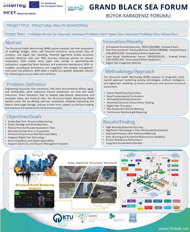 Bu güçlü temsilin ardından, forum kapsamında düzenlenen Uluslararası Proje Yarışması’nda, “Structural Health Monitoring” başlıklı çalışmamız, 60 proje arasından 1.’lik ödülüne layık görülerek önemli bir başarıya imza attı.