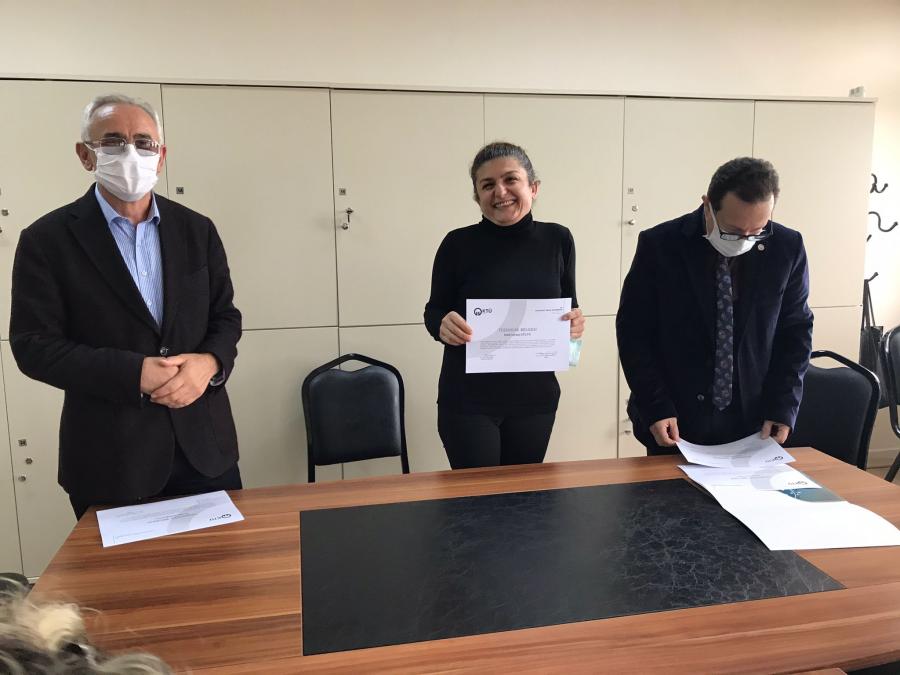 Avrupa Birliği Sınır Ötesi İşbirliği, Karadeniz Havzası Programı (AB CBC 2014-2020) tarafından desteklenen ve Karadeniz Teknik Üniversitesi, Sürmene Deniz Bilimleri Fakültesi bünyesinde yürütülen LitOUTer projesi kapsamında; 7-8 Ekim 2021 tarihinde düzenlenen “KARADENİZ’DE DENİZ ÇÖPÜ SORUNUNUN ORTAKLAR VE PAYDAŞLARLA ELE ALINMASI, ORTAK ÇÖZÜMLER ÜRETİLMESİ” adlı çalıştayın saha çalışmasında deniz çöplerinin yaşadığımız çevreye etkileri konusunda Sürmene Şehit Kaymakam Muhammet Fatih Safitürk İlkokulu öğretmenlerinin ürettikleri YARATICI FİKİRLER ile projemiz açısından farkındalığın artırılmasında göstermiş oldukları değerli katkılara istinaden Fakülte Dekanımız Prof. Dr. A. Muzaffer Feyzioğlu tarafından kendilerine teşekkür belgesi takdim edildi.