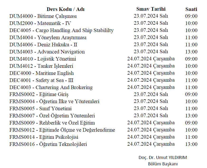 Deniz Ulaştırma İşletme Mühendisliği Bölümü
