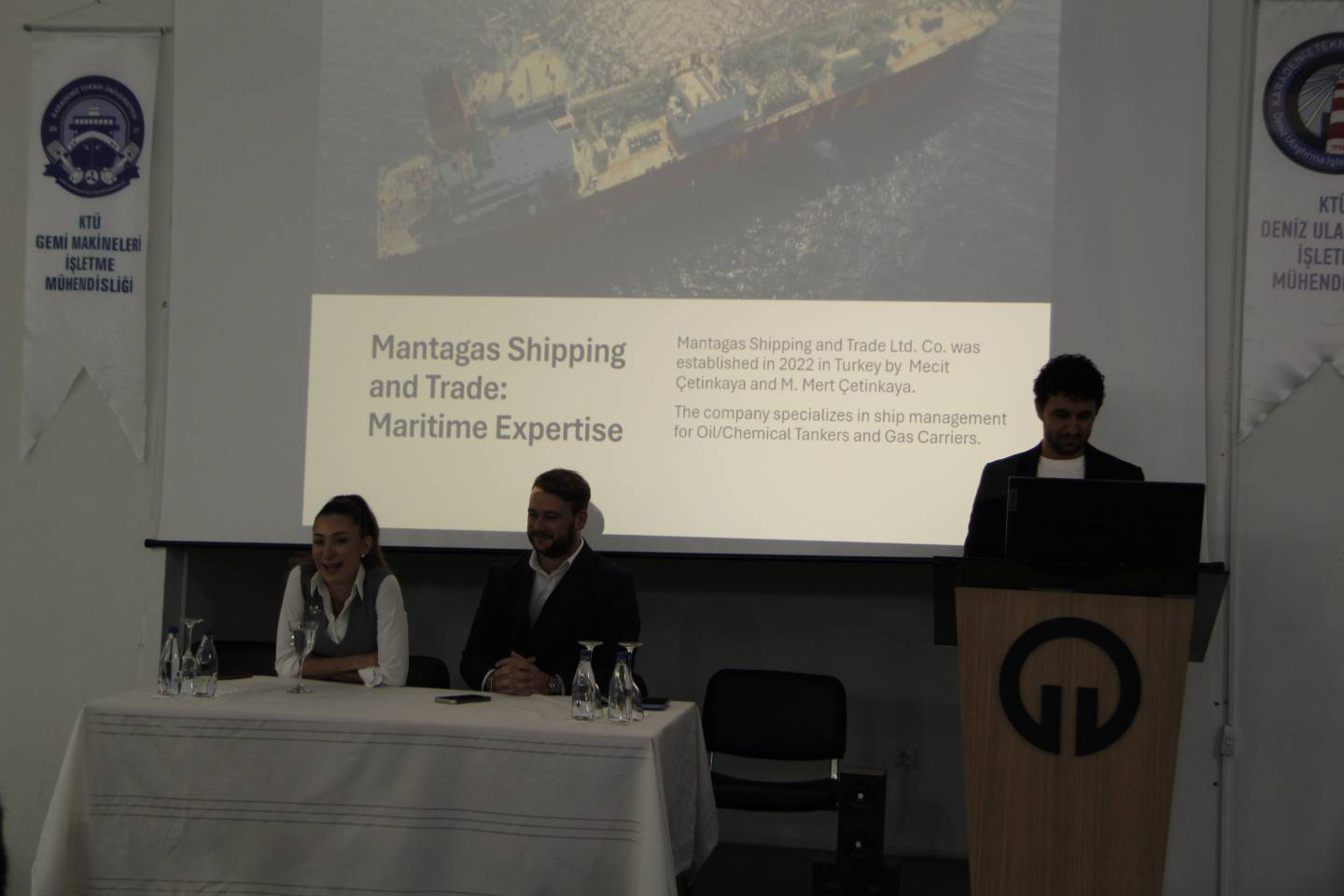 Mantagas İnsan Kaynakları Müdürü Seda Karakoç, firmanın faaliyet alanları, insan kaynakları politikaları ve filoya katılması planlanan yeni gemiler hakkında bilgi paylaştı. Etkinlik, soru–cevap bölümü ve plaket takdimi ile tamamlandı.
