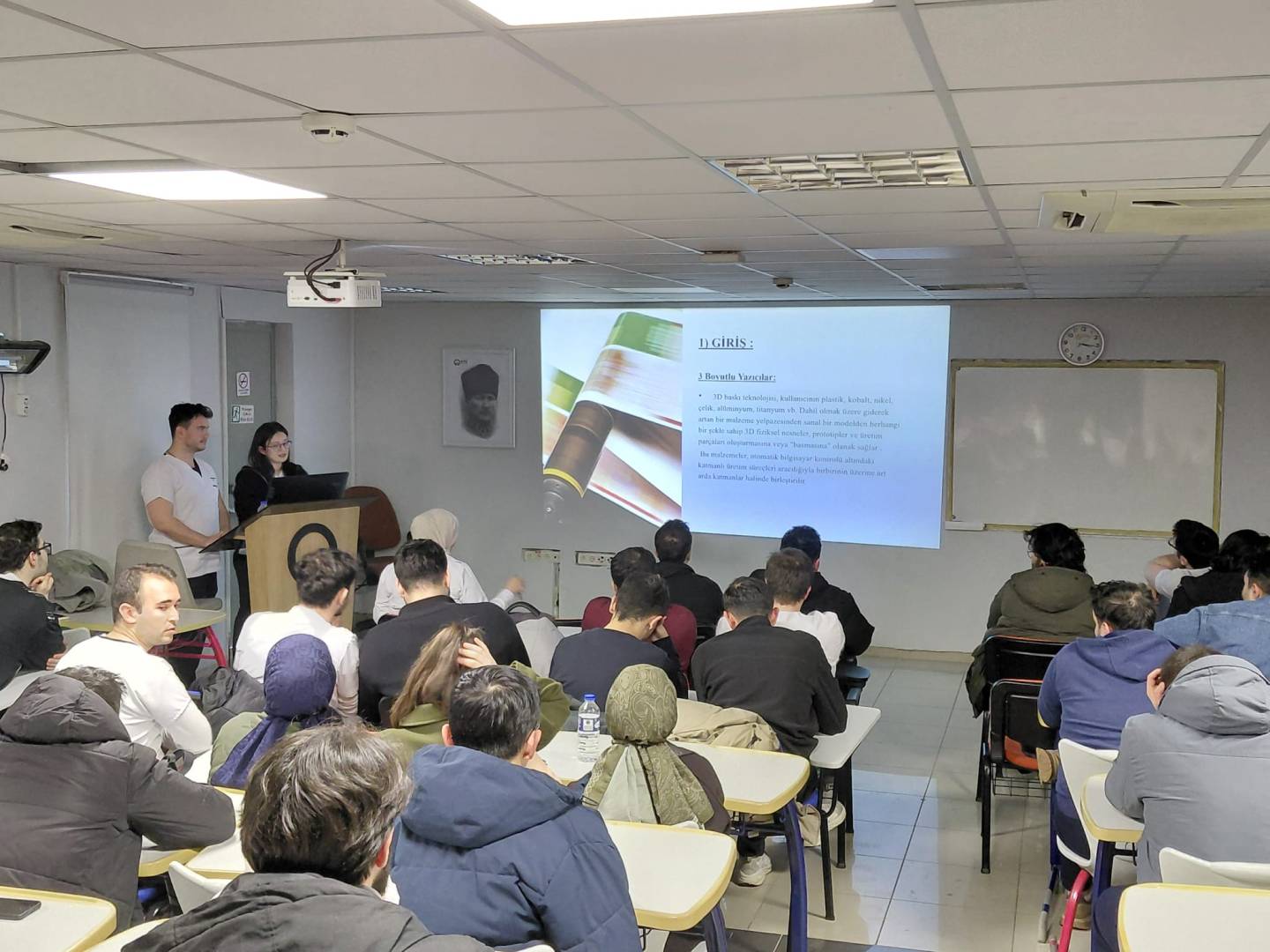Seminerde, 3D yazıcı teknolojilerinin ortodonti alanındaki kullanım alanları, dijital üretim süreçleri ve güncel klinik uygulamalar detaylı şekilde ele alınarak öğrencilerin bilgi ve deneyimlerinin artırılması sağlandı.