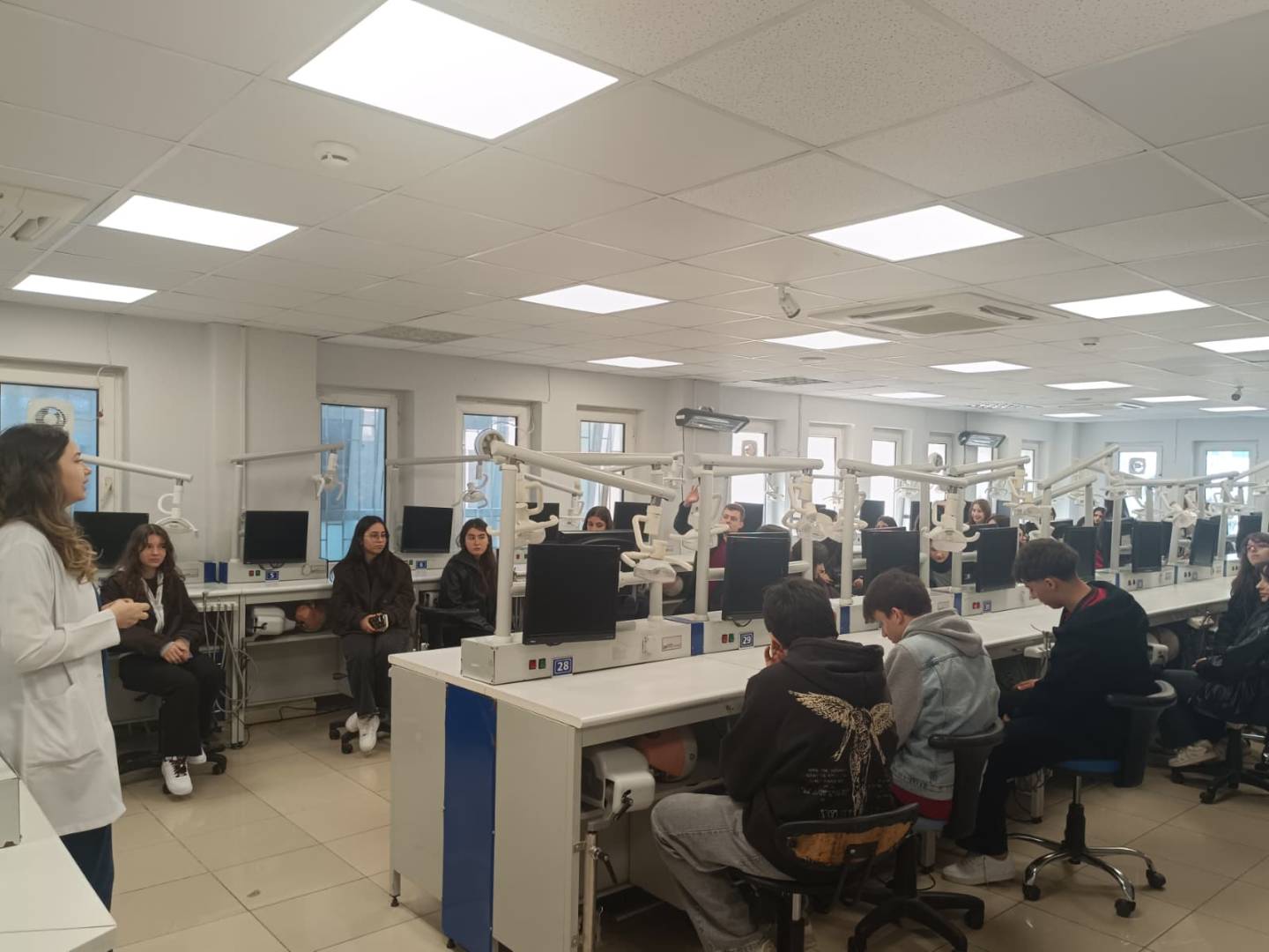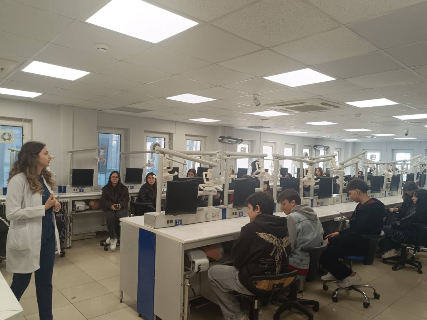 Akçaabat Anadolu Lisesi öğrencileri, 13 Nisan 2026 tarihinde Fakültemizi ziyaret ederek eğitim-öğretim faaliyetlerimiz ve sağlık hizmetlerimiz hakkında detaylı bilgi aldılar. Ziyaretler kapsamında öğrenciler, fakültemizin akademik birimlerini ve klinik alanlarını inceleme fırsatı buldular. Eğitim süreci, kullanılan teknolojiler ve diş hekimliği mesleği ile ilgili sunumların gerçekleştirildiği etkinlikte, öğrencilere meslek seçimi konusunda rehberlik edildi