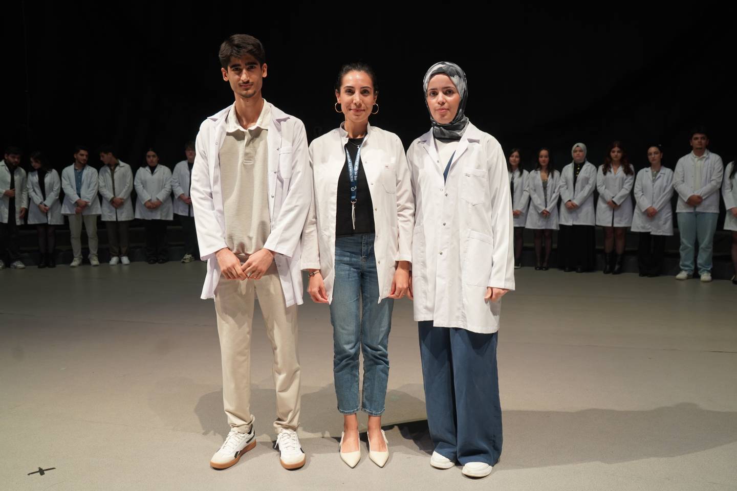 Törende ayrıca, 2025 YKS’de fakültemize en yüksek puanla yerleşen Sedanur ÇERGEL’e tebrik belgesi ve hediyesi Rektörümüz Prof. Dr. Hamdullah ÇUVALCI tarafından takdim edildi. Program, öğretim üyeleri eşliğinde Dönem I öğrencilerinin beyaz önlüklerini giymesi ve toplu hatıra fotoğrafı çekimiyle sona erdi.