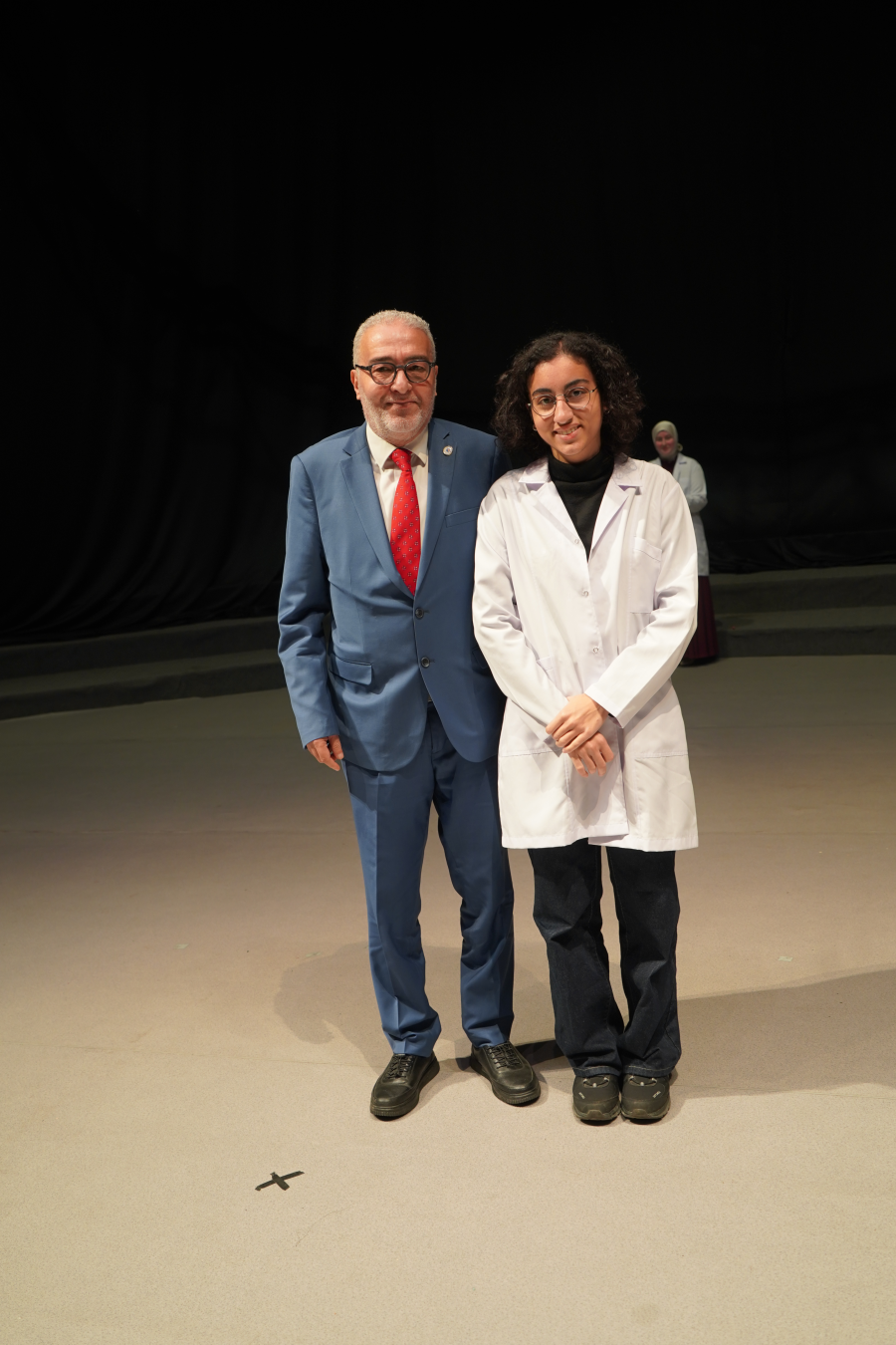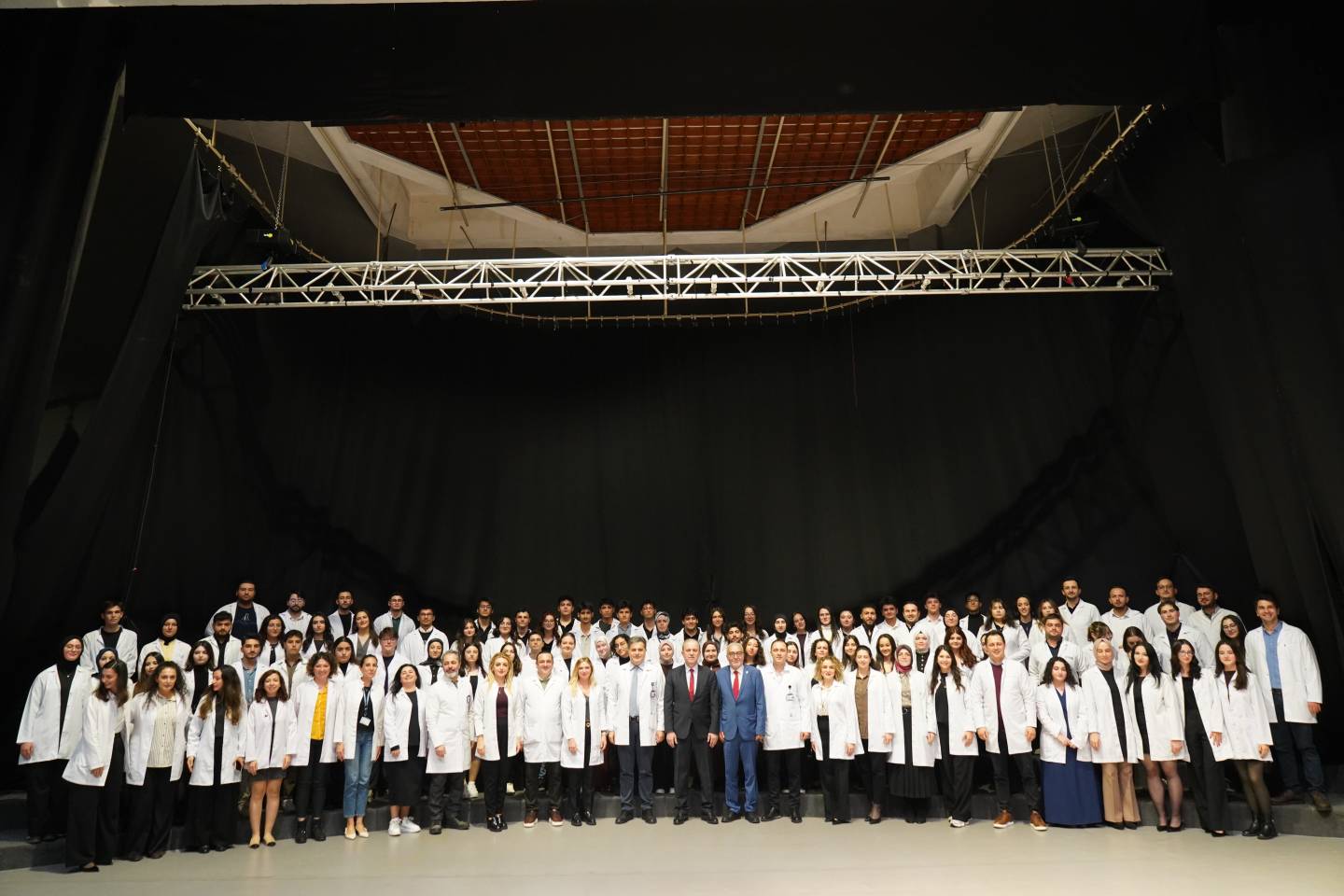Rektörümüz Prof. Dr. Hamdullah ÇUVALCI ise Üniversitemizin köklü geçmişinden ve fakültemizin akreditasyon başarısına değindi. Rektörümüz konuşmasında, “Beyaz önlük manevi bir sorumluluk taşır; etik duruş ve doğru iletişim, mesleğin temelidir,” ifadelerini kullandı.
