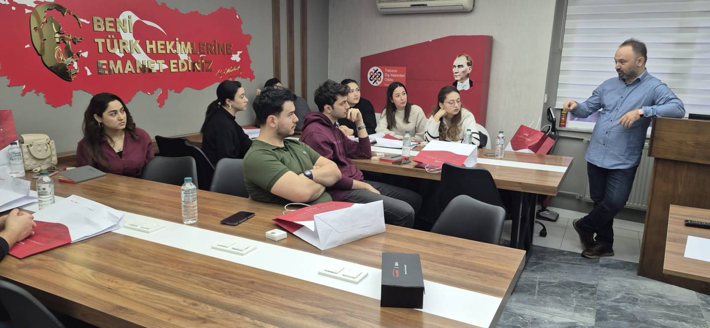 Fakültemiz Dönem V öğrencilerine yönelik Temel İmplantoloji Teorik ve Uygulamalı Eğitimi, 2025 yılında gerçekleştirilen Birim Danışma Kurulu toplantısında alınan karar doğrultusunda planlanarak, 05 Ocak 2025 tarihinde Trabzon Diş Hekimleri Odası ile Fakültemiz arasında imzalanan “Diş Hekimliği Öğrencilerinin Mesleki Etkinliklere Katılımına İlişkin İş Birliği Protokolü” kapsamında, 10 Ocak 2026 tarihinde Trabzon Diş Hekimleri Odası ev sahipliğinde gerçekleştirildi.