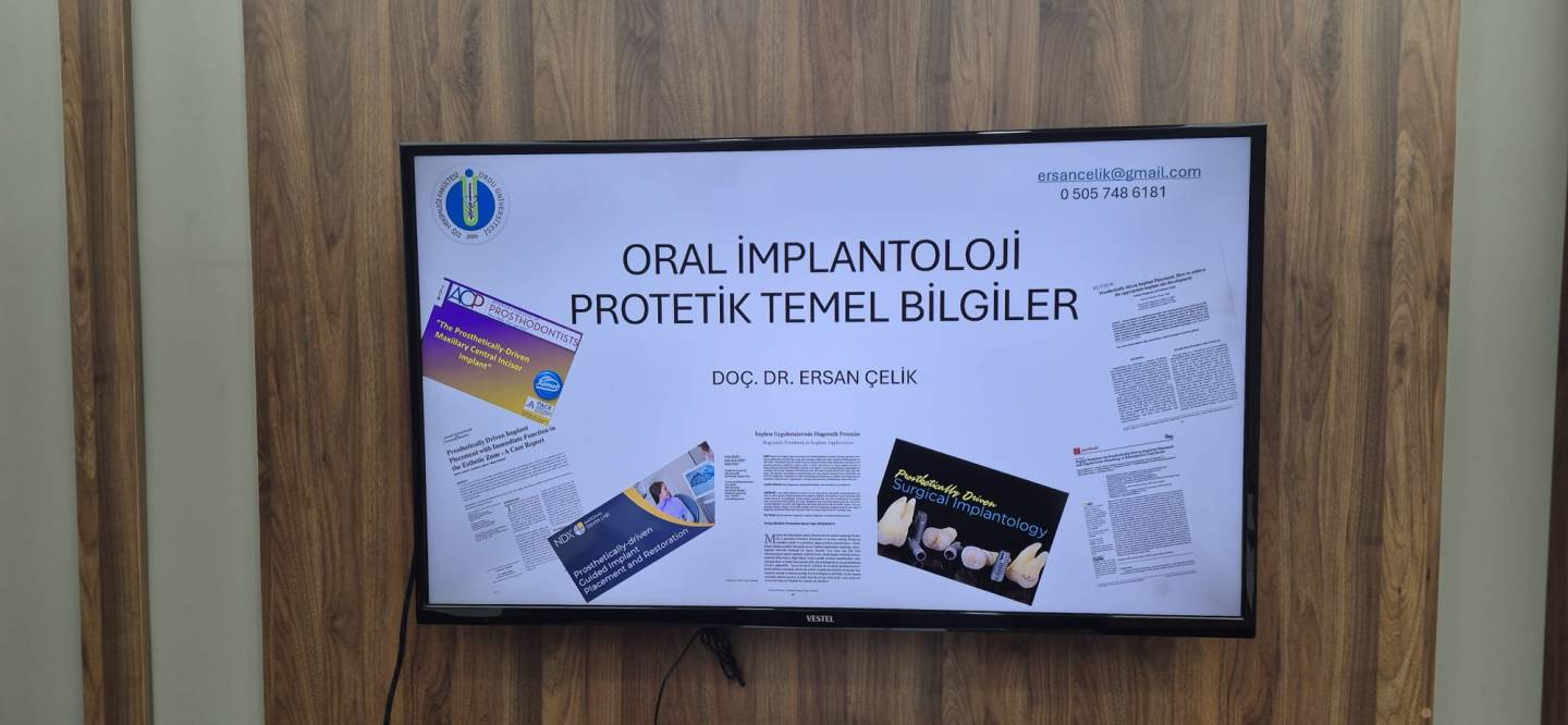Eğitim programı, Doç. Dr. Ersan Çelik tarafından verilmiş olup, programın ilk bölümünde implantoloji alanına ilişkin temel teorik bilgiler paylaşılmış, ardından bu bilgilerin pekiştirilmesine yönelik uygulamalı kurs düzenlenmiştir. 09.00–17.00 saatleri arasında gerçekleştirilen eğitim süresince öğrencilerimiz, implantoloji alanında güncel yaklaşımlar hakkında bilgi edinme ve uygulama deneyimi kazanma imkânı bulmuştur.