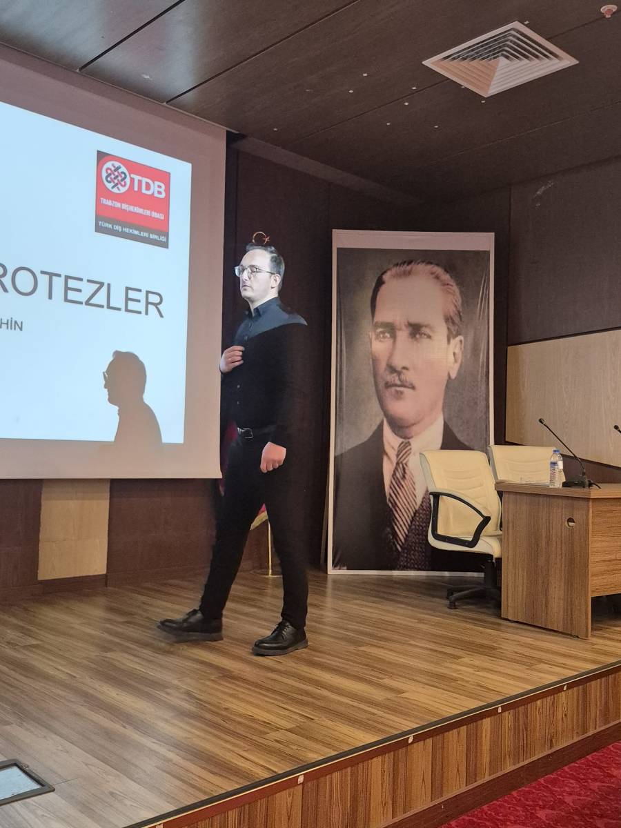 Trabzon Diş Hekimleri Odası tarafından 28 Eylül 2025 tarihinde Artvin’de düzenlenen bilimsel etkinlik kapsamında, Fakültemiz Klinik Bilimler Bölümü Ağız, Diş ve Çene Cerrahisi Anabilim Dalı öğretim üyesi Doç. Dr. Efe Can SİVRİKAYA “İmplant Başarısızlıkları”, Protetik Diş Tedavisi Anabilim Dalı öğretim üyesi Dr. Öğr. Üyesi Nesim ŞAHİN ise “İmplant Üstü Protezler” konulu sunumlarıyla katılımcılara güncel bilimsel gelişmeler hakkında bilgi paylaşımında bulunmuşlardır.