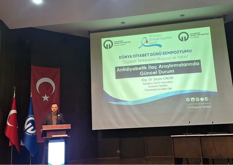 Üniversitemiz Eczacılık Fakültesi Dekanı Prof. Dr. Gülin RENDA ve Tıp Fakültesi Dekan Yardımcısı Prof. Dr. Turan SET'in açılış konuşmalarıyla başlayan sempozyumda iki oturum gerçekleştirildi. İlk oturumda Üniversitemiz Tıp Fakültesi Halk Sağlığı Ana Bilim Dalı'ndan Dr. Öğr. Üyesi Serdar KARAKULLUKÇU, konuşmasında diyabetin halk sağlığı açısından yeri ve önemini anlattı. Ardından Üniversitemiz Eczacılık Fakültesi Farmakoloji Ana Bilim Dalı'ndan Doç. Dr. Seçkin ENGİN, antidiyabetik ilaç araştırmalarındaki güncel yaklaşımlar ve gelişmelerden bahsetti.