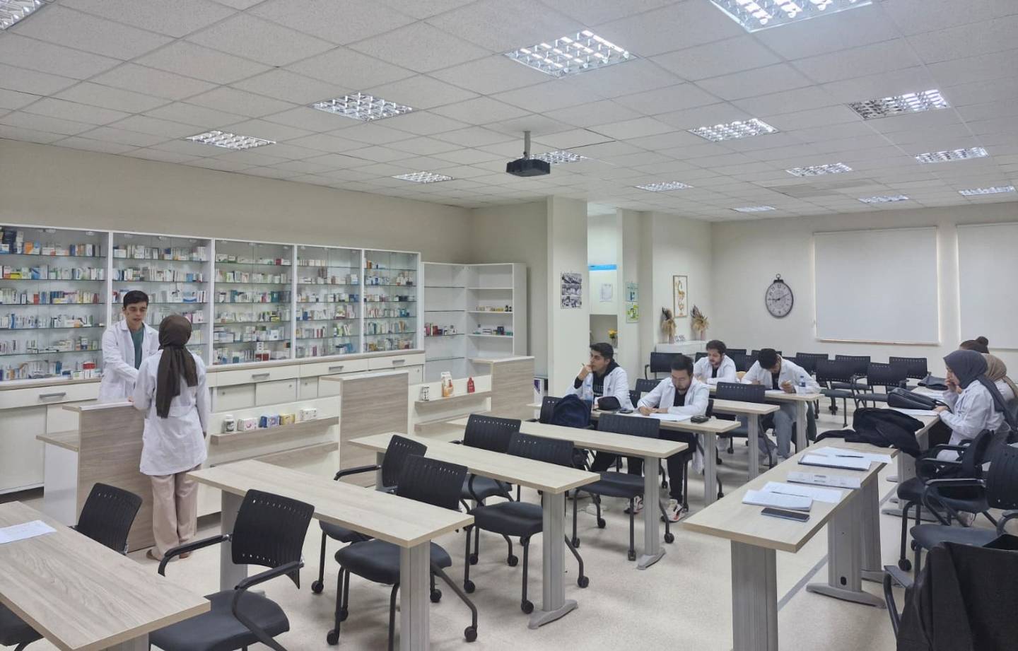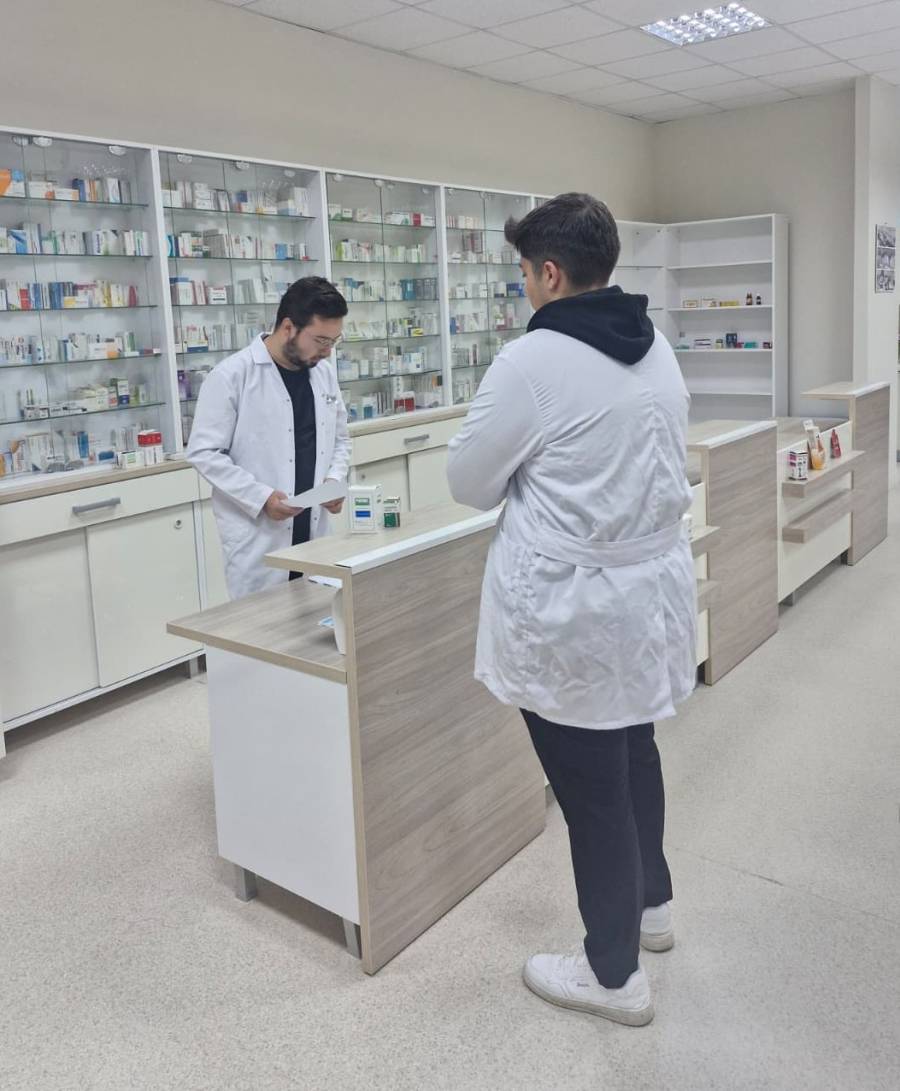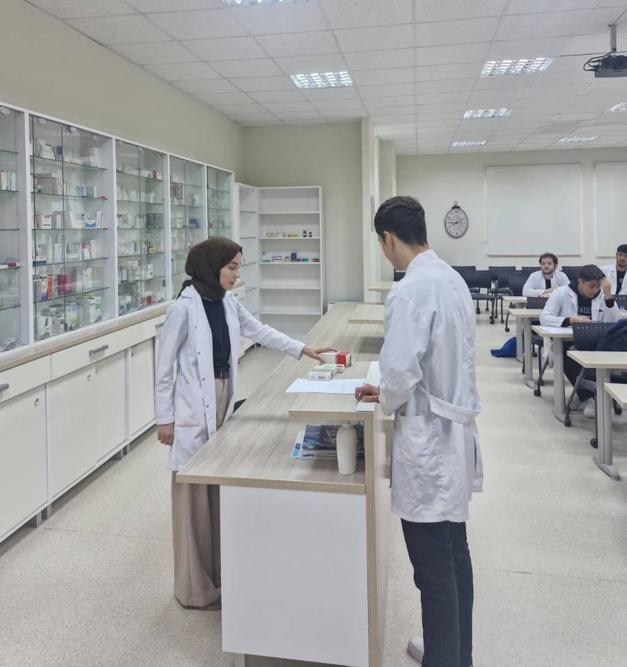 "Akılcı ilaç kullanımı" seçmeli dersi kapsamında 4. sınıf öğrencilerimiz, simüle eczane ortamı sağlayan Fakültemiz Selçuk Ecza Uygulama Eczanesi'nde simüle hasta reçetesi değerlendirme çalışmalarına başladı.