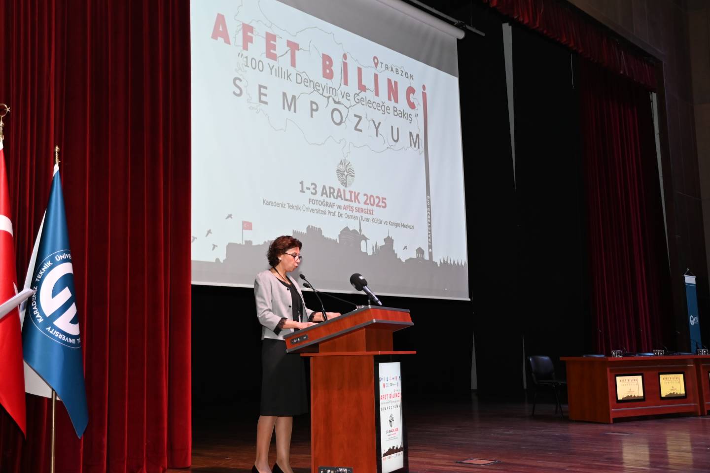 Before the opening ceremony, attendees toured a natural disaster–themed exhibition prepared by AFAD and TMMOB in the OKM foyer, offering an engaging start to the program. The ceremony welcomed several distinguished guests, including KTU Rector Prof. Dr. Hamdullah Çuvalcı, Trabzon Deputy Governor Fatih Kızıltoprak, Trabzon University Rector Prof. Dr. Emin Aşıkkutlu, Gümüşhane University Rector Prof. Dr. Oktay Yıldız, Trabzon Metropolitan Municipality Secretary General Gürkan Üçüncü, Retired Admiral Prof. Dr. Cihat Yaycı, along with academics, researchers, and representatives from professional chambers. During the opening program of the symposium, speeches were delivered by Organizing Committee Chair Prof. Dr. Arzu Fırat Ersoy, HKMO Trabzon Branch President Prof. Dr. Ebru Çolak, TMMOB Chamber of Geological Engineers President Hüseyin Alan, KTU Rector Prof. Dr. Hamdullah Çuvalcı, and Deputy Governor Fatih Kızıltoprak.