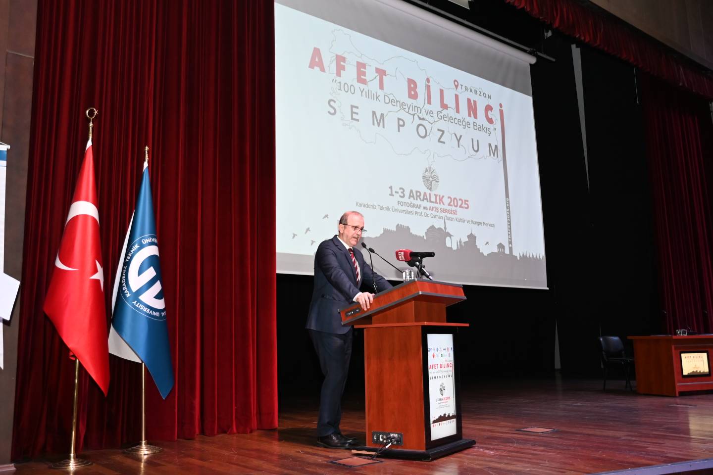 Rector Prof. Dr. Hamdullah Çuvalcı stated that the symposium serves as a platform for experts from different fields to come together, share knowledge, and promote a culture of safe living. He underscored that one of the university’s fundamental responsibilities is to transform scientific knowledge into societal benefit. He also reminded attendees that risk reduction, preparedness, and resilience are just as essential as response efforts in the face of disasters.
