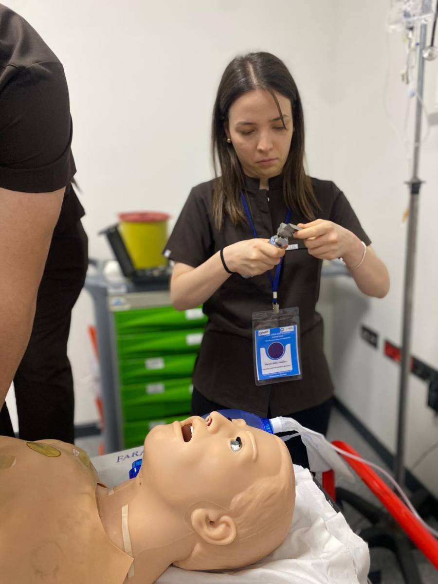 Tansiyon ve kalp ritmi alınan, ağlama gibi tepkiler veren maketler üzerinde çalışan öğrenciler, simülasyon teknolojisiyle hem tedavi yöntemlerini uygulamalı öğreniyor hem de mesleki deneyim kazanıyor. Acil vakalara müdahale becerilerini simülasyonla geliştiren öğrenciler, bu sayede mesleğe daha donanımlı ve deneyimli şekilde adım atmış oluyor.