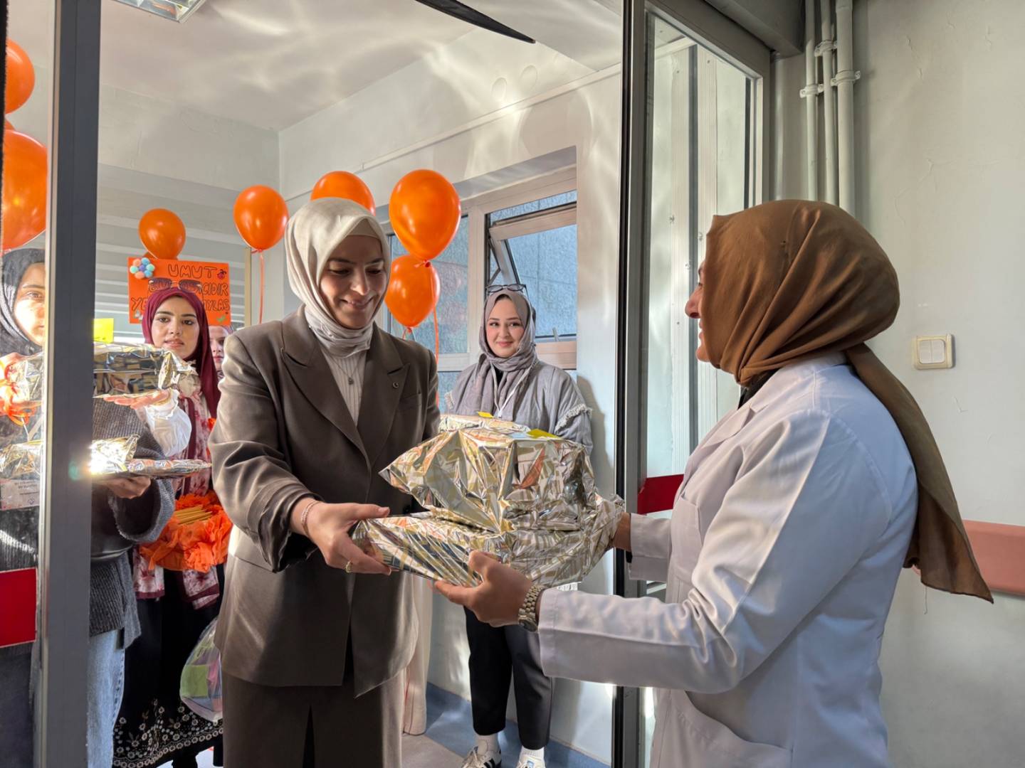 Öğrenciler, hediyelerin yanı sıra içerisinde destek mesajlarının yer aldığı mektup ve kartları, Karadeniz Teknik Üniversitesi (KTÜ) Farabi Hastanesi'ne giderek lösemi tedavisi gören çocuklara ulaştırdı.