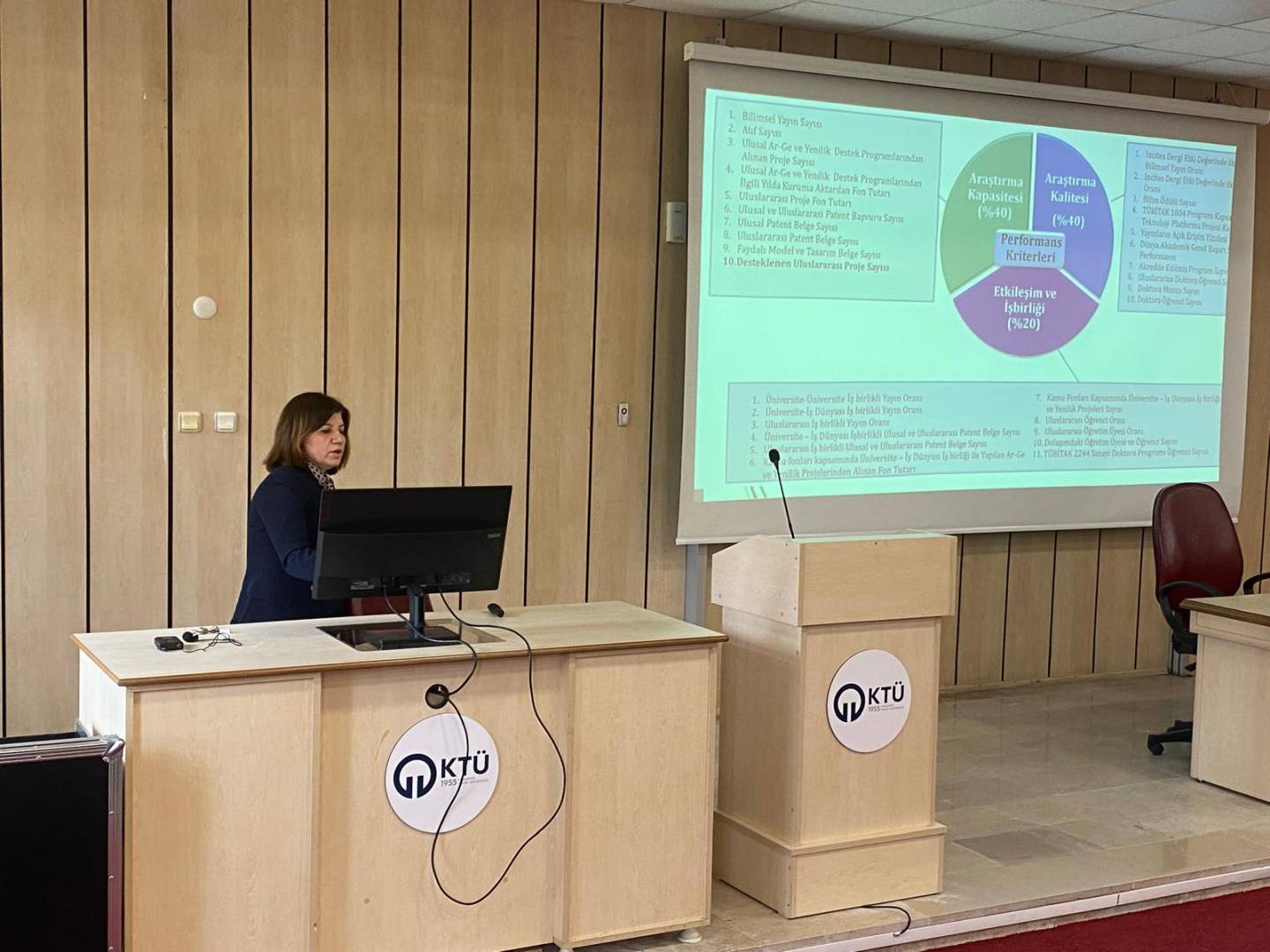 Ayrıca, KTÜ Stratejik Planı (2024–2028) hedefleri ile Araştırma Üniversiteleri İzleme Endeksi kapsamında yer alan göstergeler doğrultusunda Fakültemizin performans değerleri değerlendirilerek, bu alanlarda iyileştirme sağlanmasına yönelik yapılması gereken çalışmalar ve alınması gerekli tedbirler detaylı şekilde görüşüldü.