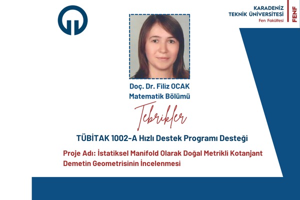 Fakültemiz Matematik Bölümü öğretim üyelerinden Doç. Dr. Filiz OCAK'ın “İstatiksel Manifold Olarak Doğal Metrikli Kotanjant Demetin Geometrisinin İncelenmesi” başlıklı projesi, “TÜBİTAK 1002-A Hızlı Destek Programı” kapsamında desteklenmiştir.
