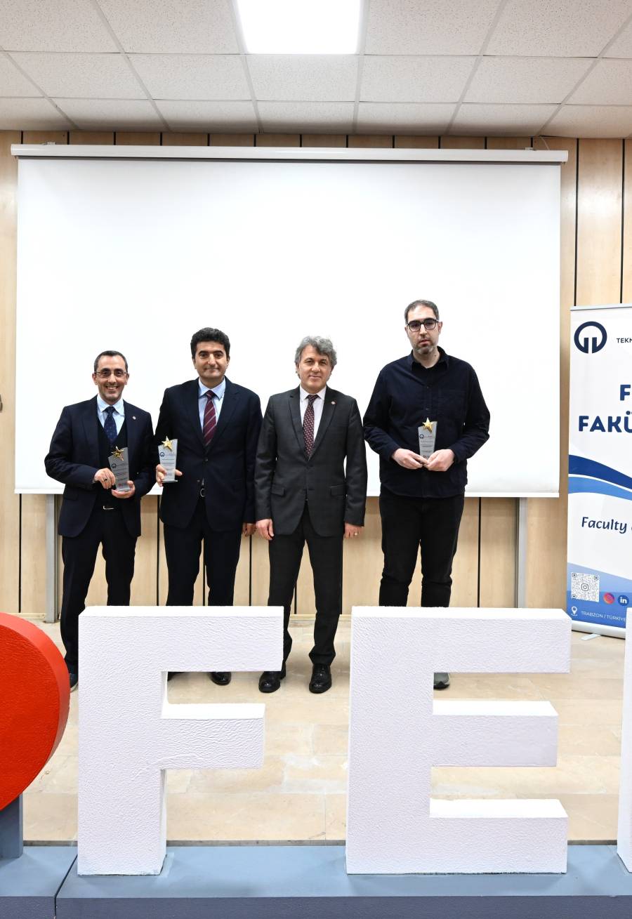 Törene Rektörümüz Prof. Dr. Hamdullah ÇUVALCI, Rektör Yardımcıları Prof. Dr. Ali TEMİZ, Prof. Dr. Ömer Faruk URSAVAŞ, Fakültemiz Dekanı Prof. Dr. Ali Osman BELDÜZ, dekan yardımcıları ile akademik ve idari personel katıldı. Program, saygı duruşu ve İstiklal Marşı’nın ardından Dekanımız Prof. Dr. Ali Osman BELDÜZ’ün fakültemizin 2025 yılı akademik performansını açıklayan sunumuyla başladı. KTÜ Rektör Prof. Dr. Hamdullah ÇUVALCI, törende yaptığı konuşmada akademik başarılarından dolayı öğretim üyelerini tebrik ederek, KTÜ’nün bilimsel üretkenliğine katkı sunan tüm akademisyenlere teşekkür etti. Konuşmaların ardından ödül takdimlerine geçildi.