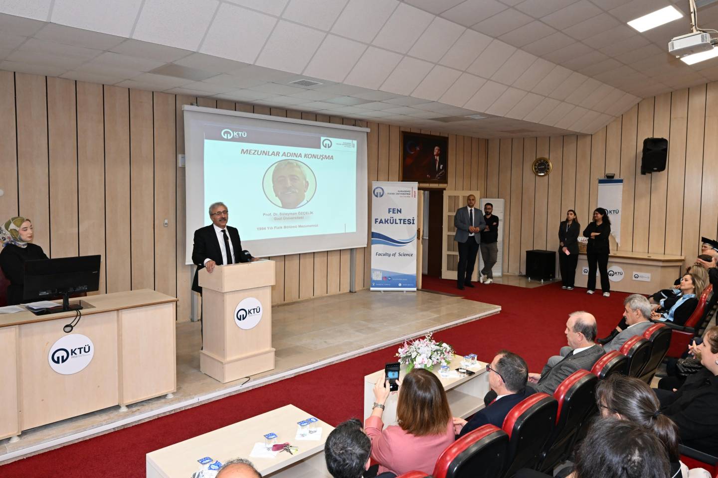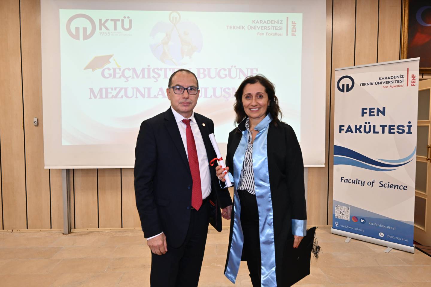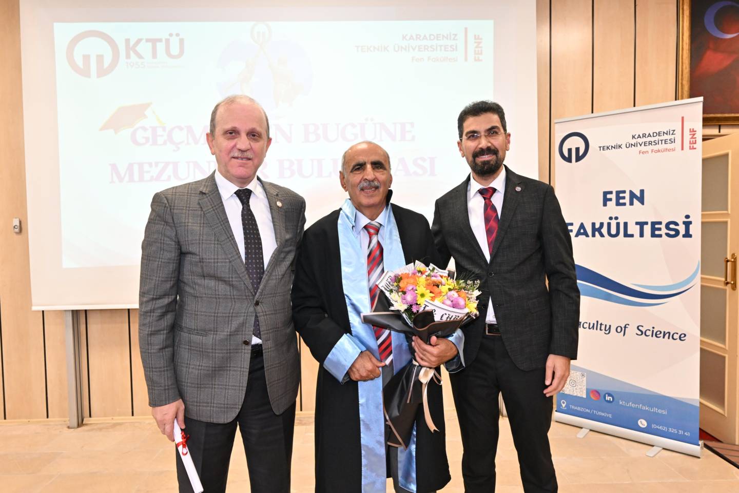 Programın ilerleyen saatlerinde, Nazım Terzioğlu Amfisi'nde düzenlenen törenle duygusal anlar yaşandı. Fakültemizin ilk mezunlarından, emekli kimya öğretmeni 1974 Kimya mezunumuz Deryami AKGÜL, temsili mezuniyet belgesini Sayın Rektörümüz Prof. Dr. Hamdullah ÇUVALCI'dan aldı. 1984 Fizik Bölümü mezunu ve Gazi Üniversitesi öğretim üyesi Prof. Dr. Süleyman ÖZÇELİK de mezunlar adına yaptığı konuşmada yıllar sonra yeniden aynı çatı altında buluşmanın mutluluğunu dile getirdi.