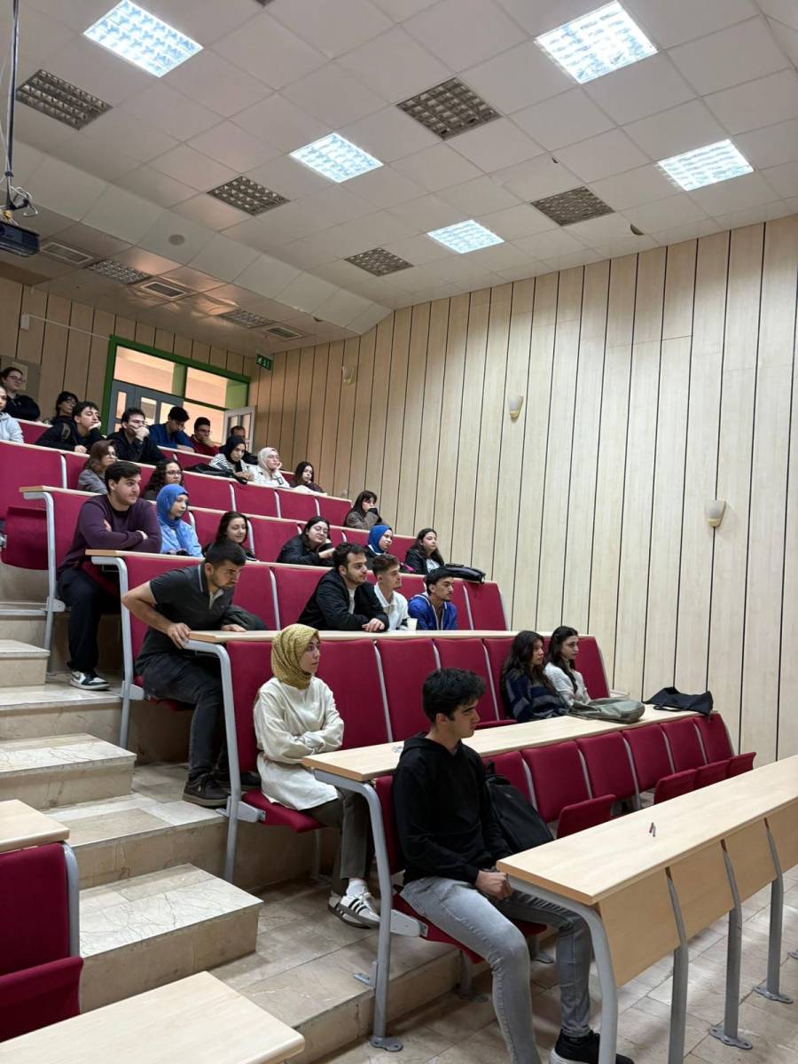 Ziyareti sırasında, anlık gelişen bir fikirle öğrencilerimizle mezun–öğrenci söyleşisi düzenlendi. Sayın ŞEN, öğrencilerimizle samimi bir sohbet gerçekleştirerek hem mesleki deneyimlerini hem de kariyer yolculuğundan değerli paylaşımlarını aktardı.