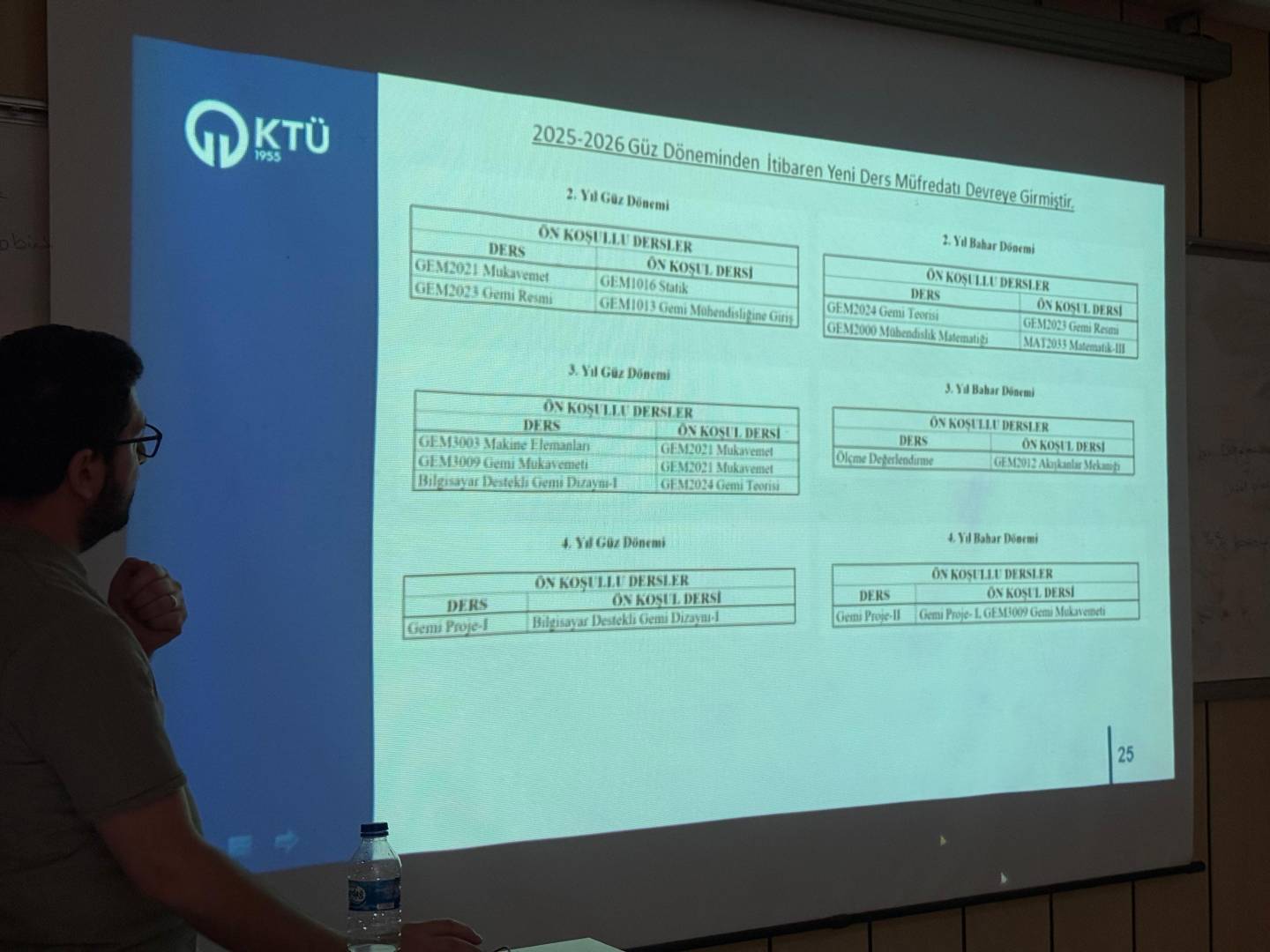 Program kapsamında Bölüm Başkan Yardımcımız Dr. Öğr. Üyesi Dursun SARAL, bölümümüzü yeni kazanan öğrencilerimize Bölümümüzün tanıtımını, MÜDEK Akreditasyon sürecini ve 2025-2026 Eğitim-Öğretim Yılı güz dönemi itibarı ile uygulamaya konulan yeni ders müfradat planını ve nasıl işleyeceğini anlatmıştır.