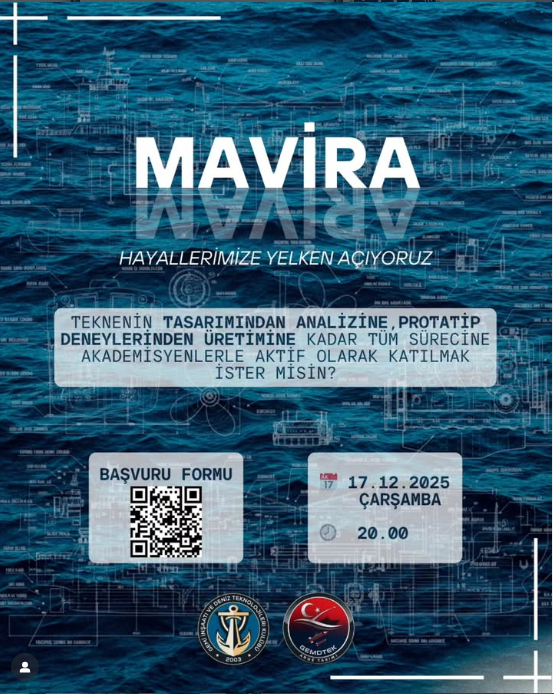KTÜ Gemi İnşaatı ve Deniz Teknolojileri Kulübü ile GEMDTEK AR-GE Takımı tarafından yürütülen MAVİRA Projesi kapsamında eğitim sürecinin ilk dersi 17.12.2025 tarihinde gerçekleştirildi. Projenin teknik altyapısını güçlendirmeyi amaçlayan bu eğitim süreciyle birlikte çalışmalar resmen başlamış oldu.
