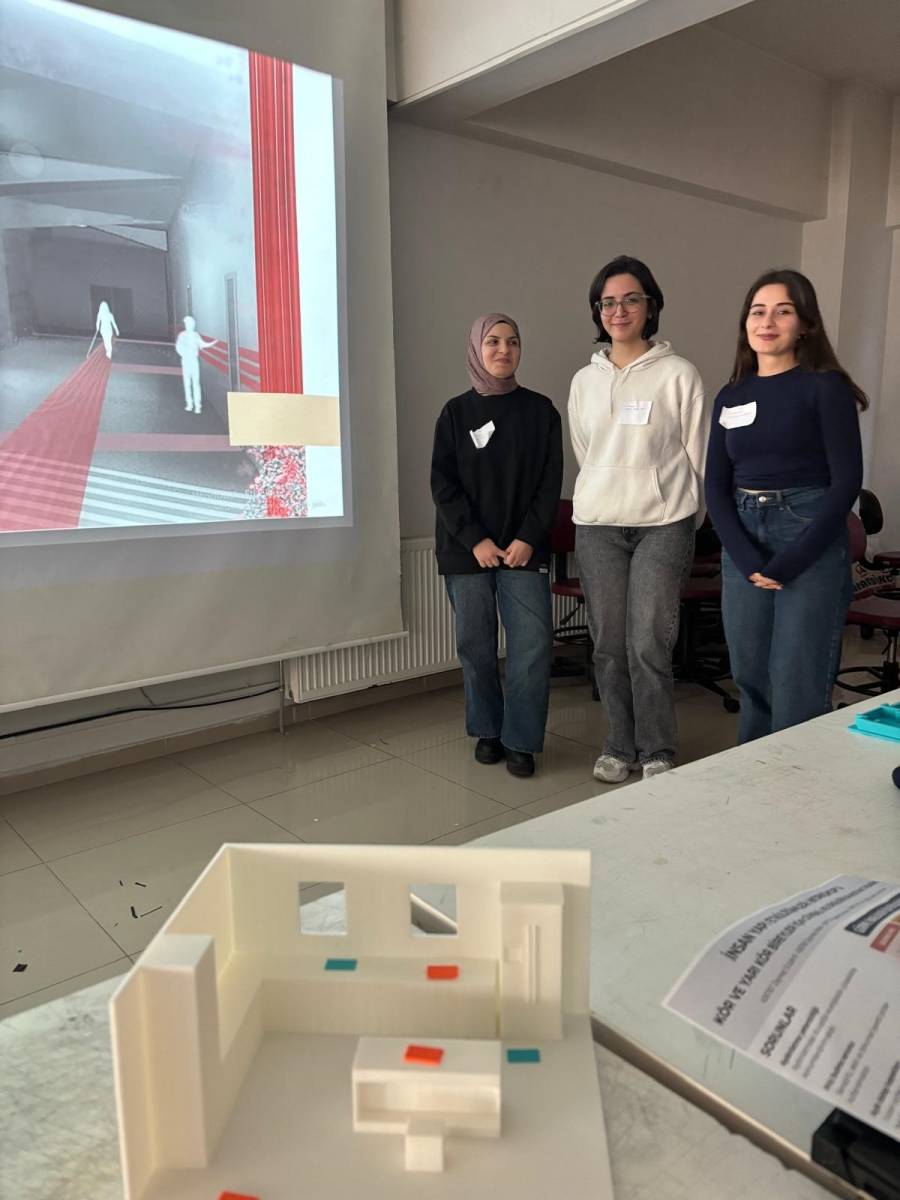 KTÜ Mimarlık Fakültesi bünyesinde gerçekleştirilen workshop, görme engelli bireyler için etkileşimli mekân tasarımlarını disiplinlerarası bir yaklaşımla ele almıştır. Mimarlık, İç Mimarlık ve Şehir ve Bölge Planlama bölümlerinden öğrencilerin bir araya geldiği bu çalışma, mekânın yalnızca biçimsel değil; algısal, duyusal ve sosyal bir deneyim alanı olduğunu yeniden düşünmeye olanak tanımıştır.