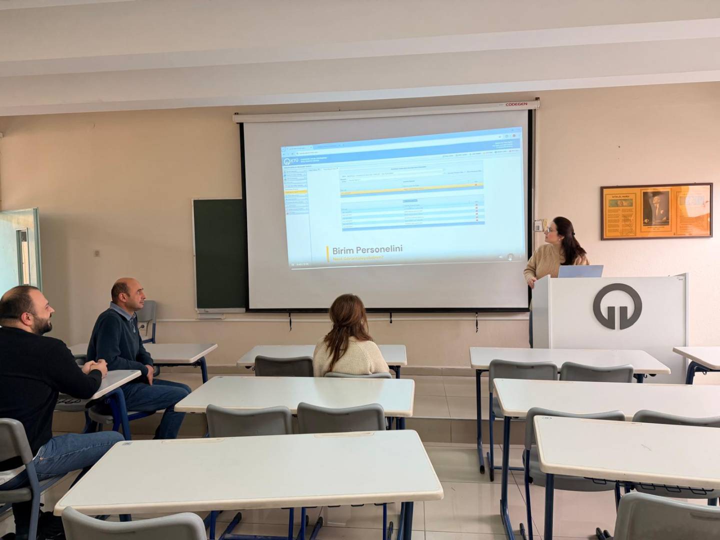 Eğitim toplantısında, üniversitemizin kalite politikaları çerçevesinde geliştirilen Performans Yönetim Sistemi’nin işleyişi, dijital altyapısı ve akademik faaliyetlerin değerlendirilmesine yönelik ölçütler ele alındı. Toplantı boyunca sistemin akademik planlama, eğitim-öğretim ve araştırma faaliyetlerine sağlayacağı katkılar üzerinde durulurken, öğretim üyelerimiz uygulamaya yönelik görüş ve deneyimlerini paylaştı.