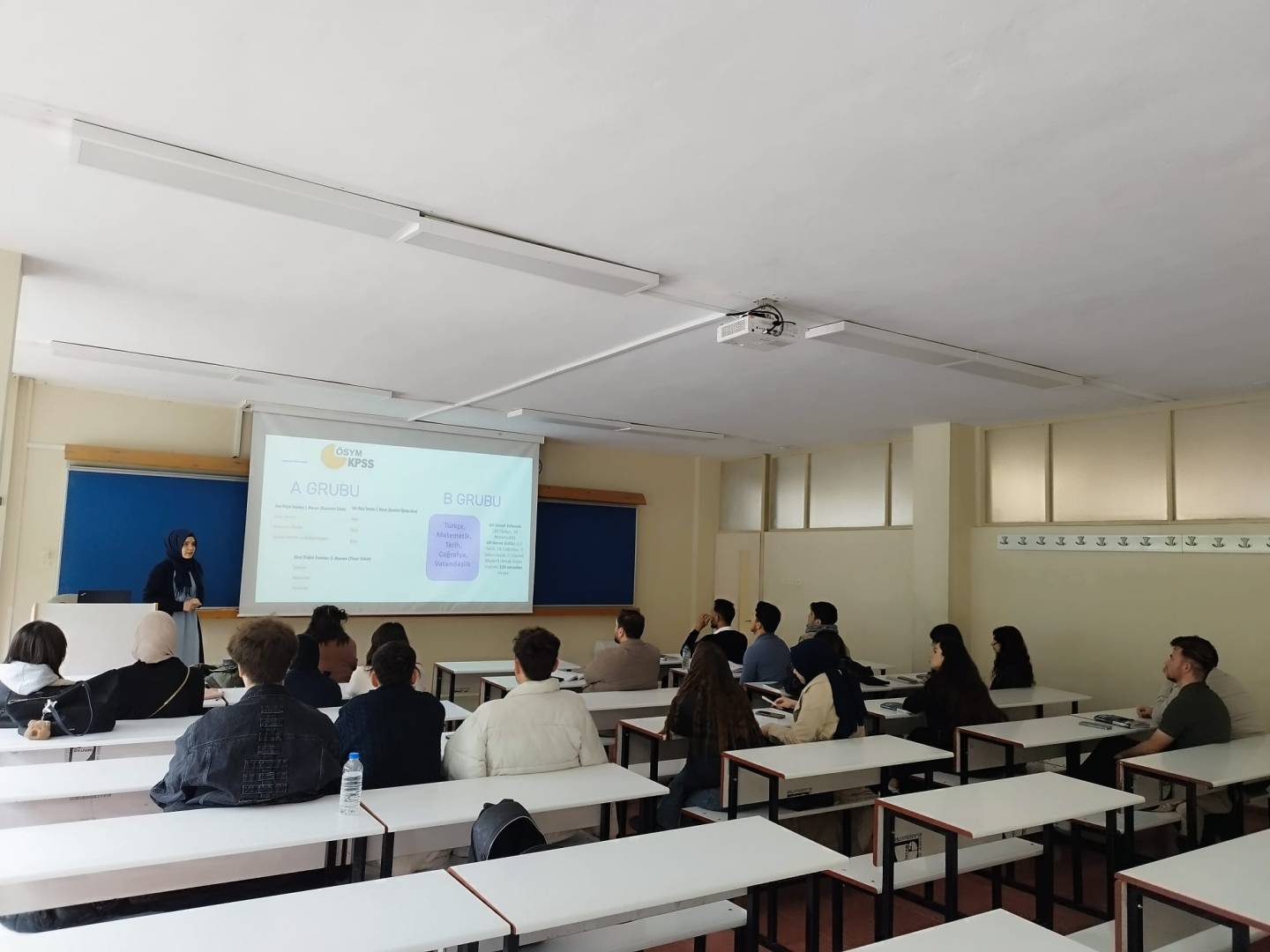 Programda ayrıca İdari Yargı Hakimliği başta olmak üzere kamu kariyerine yönelik alternatif yollar ele alındı. Öğrencilerin kariyer planlamalarına katkı sağlamak amacıyla gerçekleştirilen etkinlik, yoğun katılım ve ilgiyle tamamlandı.