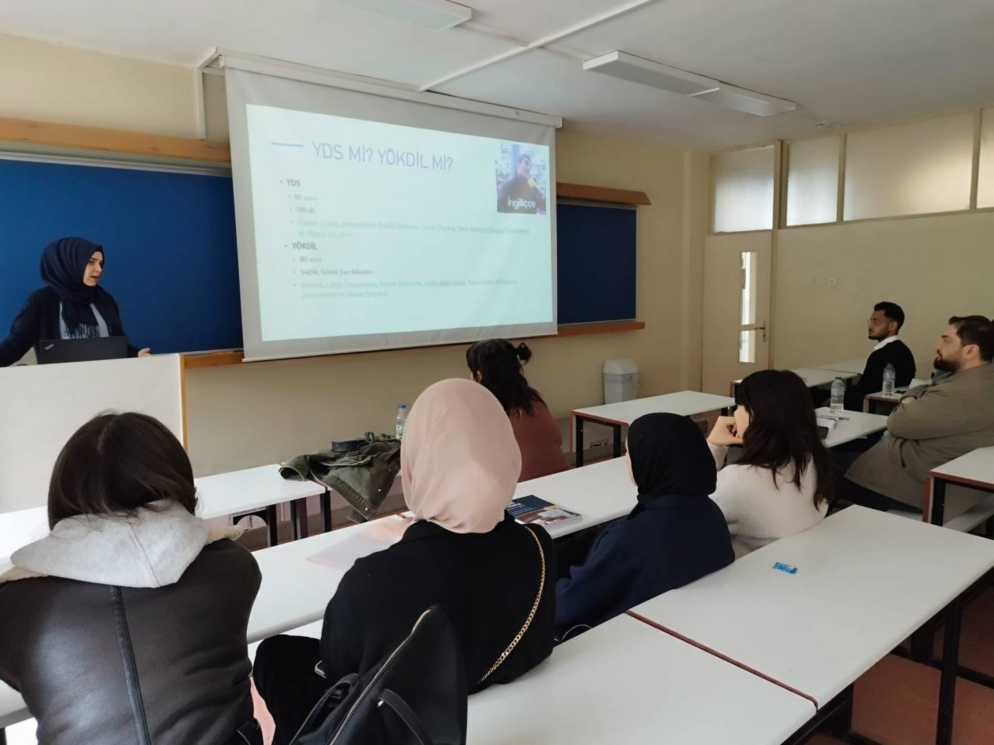 Etkinlik kapsamında, lisansüstü eğitim süreçleri ile kamu kariyerine yönelik önemli sınavlar hakkında kapsamlı bilgilendirmeler yapıldı. Katılımcılara YÖKDİL, YDS, ALES ve KPSS süreçlerine dair detaylı içerikler sunuldu.