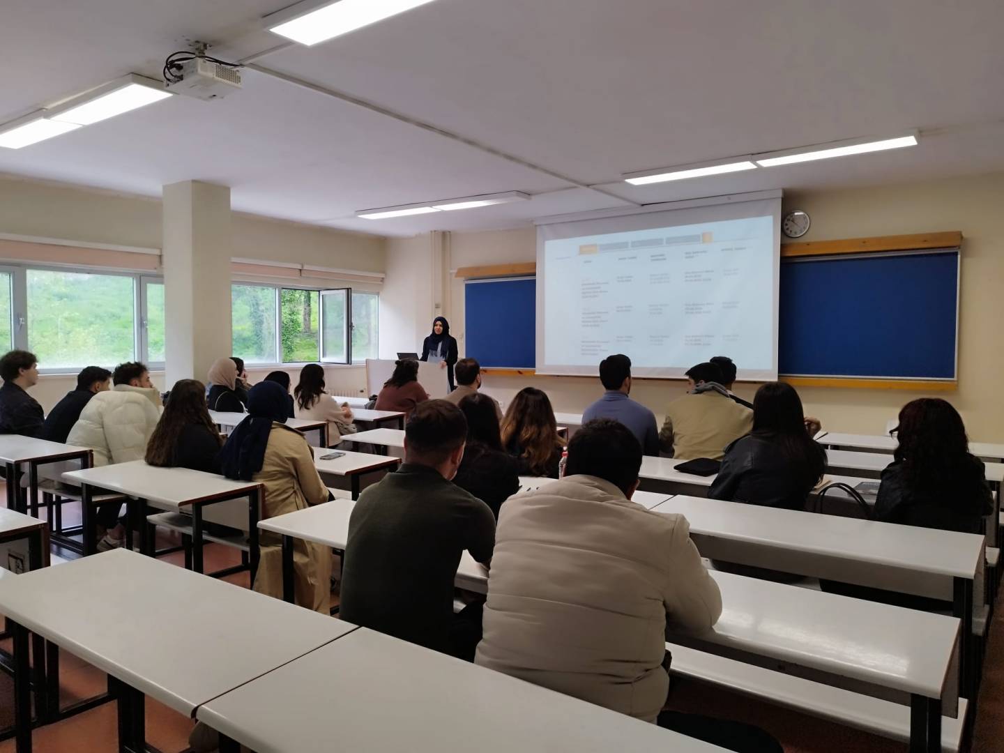 Bölümümüz Staj Komisyonu Başkanı Arş. Gör. İrem GÜRAN BODUR, staj programları ve süreçleri hakkında öğrencilerimizi bilgilendirdi.