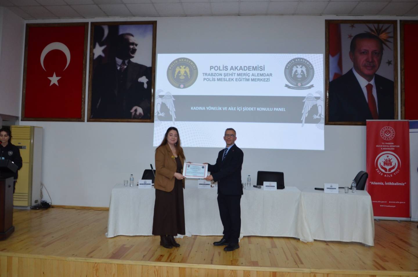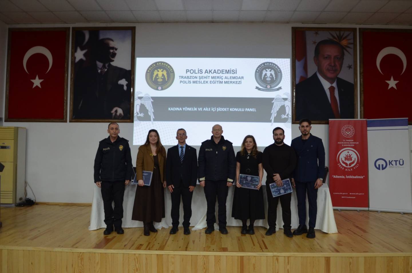 Panelde;Doç. Dr. Seda Gayretli Aydın (Trabzon Üniversitesi Hukuk Fakültesi) “Kadına Karşı Şiddetin Dijital Yüzü: Yapay Zekâ ve Cinsiyet”, Dr. Öğr. Üyesi Güleycan Akgöz (KTÜ Psikoloji Bölümü) “Görünmeyeni Görmek: Polis İçin Sahada Psikolojik Şiddeti Tanıma ve Risk Değerlendirmesi” başlıklı sunumuyla moderatörlük görevini, Tolunay Bayraktar Kayacı (Trabzon Aile ve Sosyal Hizmetler İl Müdürlüğü – Akçaabat Sosyal Hizmet Merkezi) “Israrlı Takip”,Öğr. Gör. Burak Bayrak (Avrasya Üniversitesi Psikoloji Bölümü) ise “Öfke Kontrolü ve Öfke Yönetimi” başlıklı sunumlarıyla katkı sundu. Etkinlik, soru-cevap bölümünün ardından sona erdi.