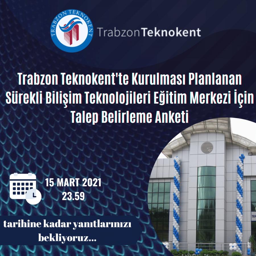 Bu anket Trabzon Teknoloji Geliştirme Bölgesi Yönetimi tarafından oluşturulmuştur. Anket, kendi yerleşkelerinde inşa etmeyi planladıkları, sürekli eğitim merkezi projesi ön hazırlık çalışması için yapılmaktadır. Geri dönüşünüz, oluşturulacak projenin geleceği için değerlidir. Detaylar anket açıklamasında mevcuttur.