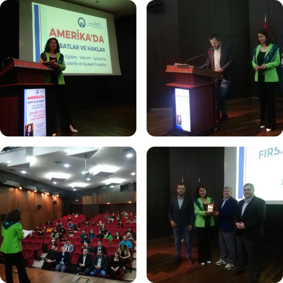 KTÜ Kariyer Geliştirme Uygulama ve Araştırma Merkezinin (KM) düzenlediği etkinlik 27 Nisan 2023 Perşembe günü Prof. Dr. Osman Turan Kültür ve Kongre Merkezi’nde “Amerika’da Fırsatlar ve Haklar” adı altında Avukat- Akademisyen Siyasetçi Sayın Prof. Helen Gülgün BÜKÜLMEZ’in katılımıyla gerçekleştirildi.