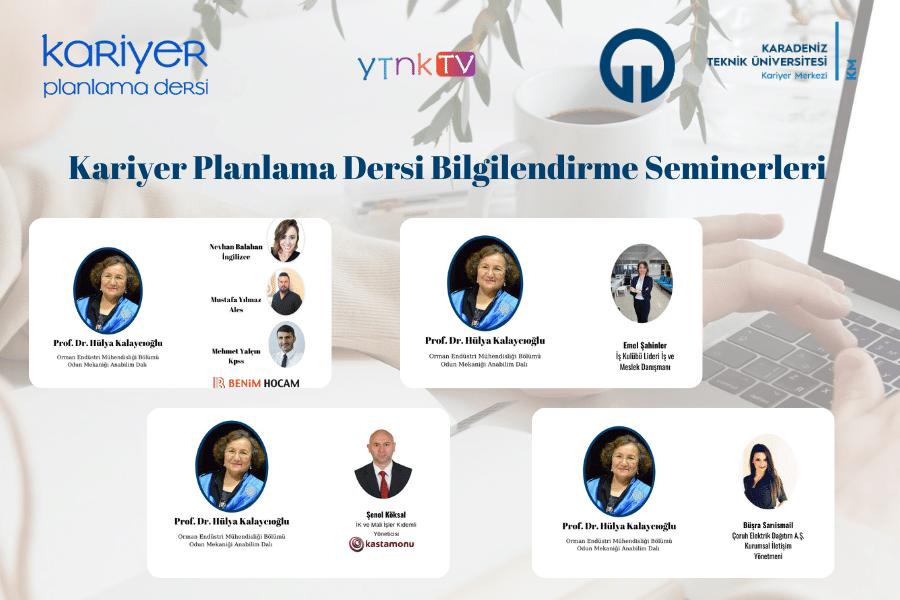 Cumhurbaşkanlığı İnsan Kaynakları Ofisi tarafından üniversite öğrencilerinde kariyer farkındalığı yaratmak ve onlara kariyer yolculuklarında destek sağlamak için hazırlanan “Kariyer Planlama” dersi kapsamında derse kamu ve özel sektörün alanlarında deneyimli temsilcileri katılarak öğrencilerimize bilgi ve birikimlerini aktarmaktadır. Bu çerçevede Kariyer Planlama dersimizin Nisan ayı konukları etkili sunum, etkili iletişim, zaman yönetimi, stres yönetimi, liderlik, empati gibi İnce Yetenekleri (Soft Skills) ve bu yeteneklerin başarı üzerindeki etkilerini anlatan İş Kulübü Lideri, İş ve Meslek Danışmanı Emel ŞAHİNLER, öğrencilerimizin eğitim süreci ve sonrasında karşılaştığı KPSS, ALES, YDS gibi sınavlar hakkında bilgiler veren Benim Hocam Akademinin seçkin eğitmenlerinden Nevhan BALABAN, Mustafa YILMAZ ve Mehmet YALÇIN ile bir özgeçmişte nelere dikkat edilmeli, özgeçmiş nasıl oluşturulmalı, mülakatta nelere dikkat edilmeli ve kastamonu entegre nasıl bir aday seçimi yapılır şeklindeki sorulara cevap veren sektörünün önde gelen kuruluşlarından Kastamonu Entegrenin İnsan Kaynakları ve Mali İşler Kıdemli Yöneticisi Şenol KÖKSAL’dı. Prof. Dr. Hülya KALAYCIOĞLU’nun sorumluluğunda gerçekleşen, öğrencilerin kariyerlerini kendi zekâ, kişilik, bilgi, beceri, yetenek ve yetkinliklerine uygun olarak belirleyebilmeleri için yol gösterilmesi derse katılıp katkı sunan tüm katılımcılarımıza teşekkür ederiz.