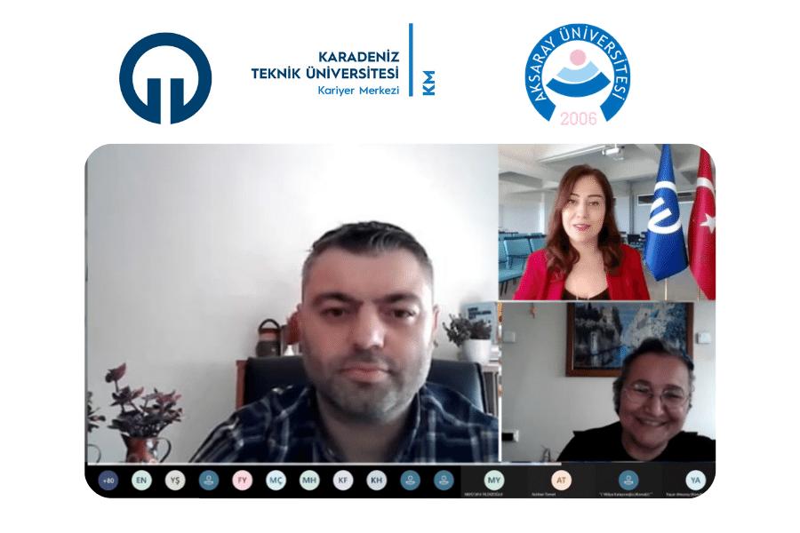 Akrasay Üniversitesi ve KTÜ Kariyer Merkezi işbirliğinde düzenlenen “Umu(t) ile N(e)vmit Arasında Kariyer Planlanabilir mi” semineri Kariyer Danışmanımız Öğr. Gör. Setenay ŞEVİK’in moderatörlüğünde, Ögr. Gör. Hakan SAVAŞ’ın sunumuyla 27 Mayıs 2021 tarihinde online olarak gerçekleştirildi.