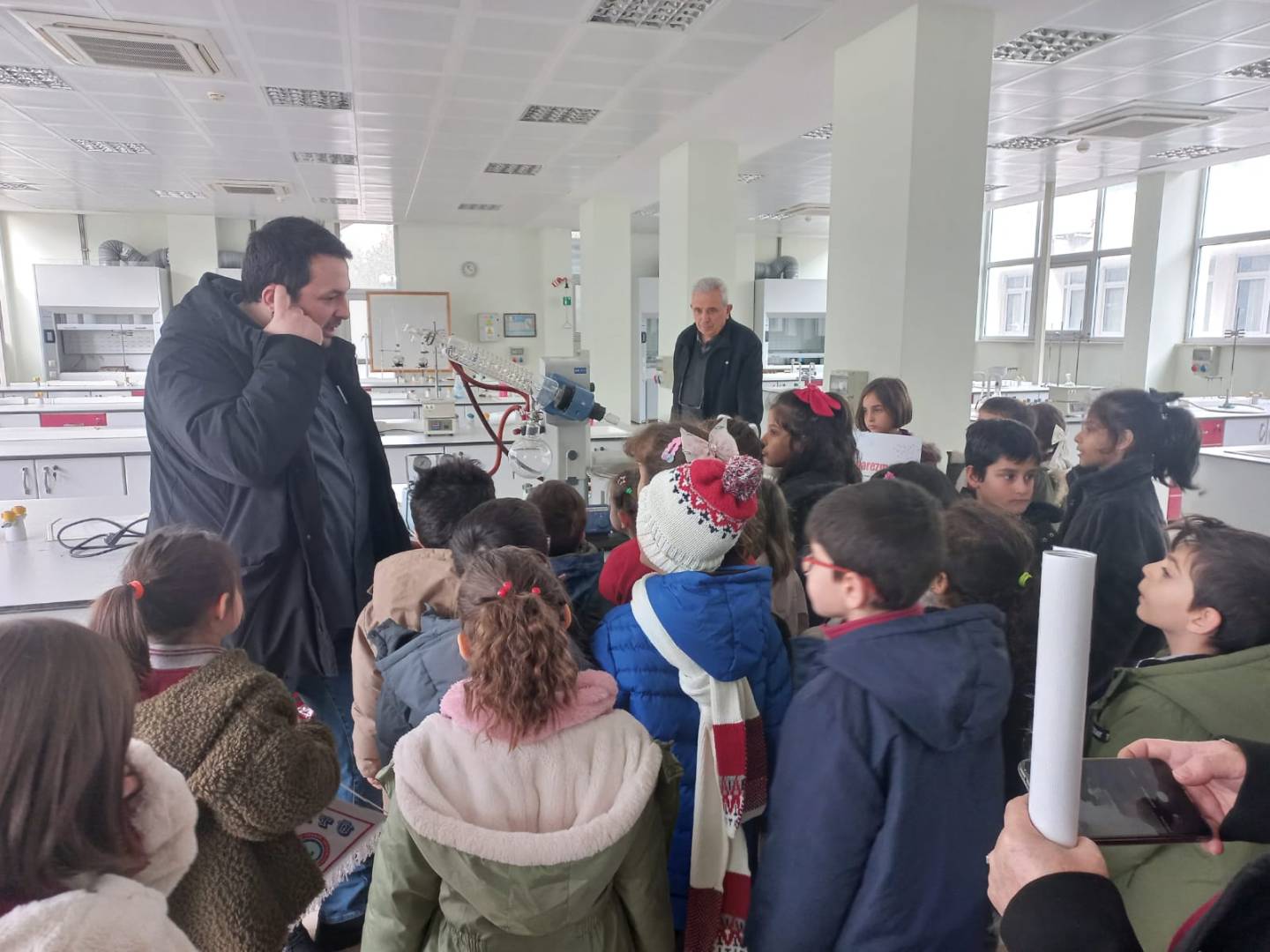 Tanıtımın ardından öğrenciler, bölüm laboratuvarlarını gezdi. Laboratuvarlarda yürütülen çalışmalar hakkında bilgi verilerek, deneylerde kullanılan cihaz ve malzemeler tanıtıldı. Öğrencilere bilimsel çalışmaların temel aşamaları anlatılırken, kimya biliminin günlük hayattaki yeri ve önemi de örneklerle aktarıldı. Yapılan açıklamalar sırasında öğrencilerin yoğun ilgi gösterdiği, merak ettikleri konular hakkında sorular sordukları gözlendi.