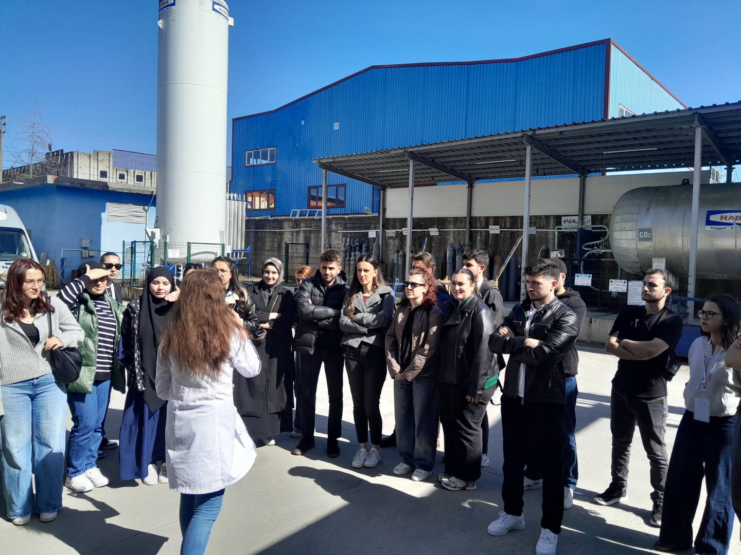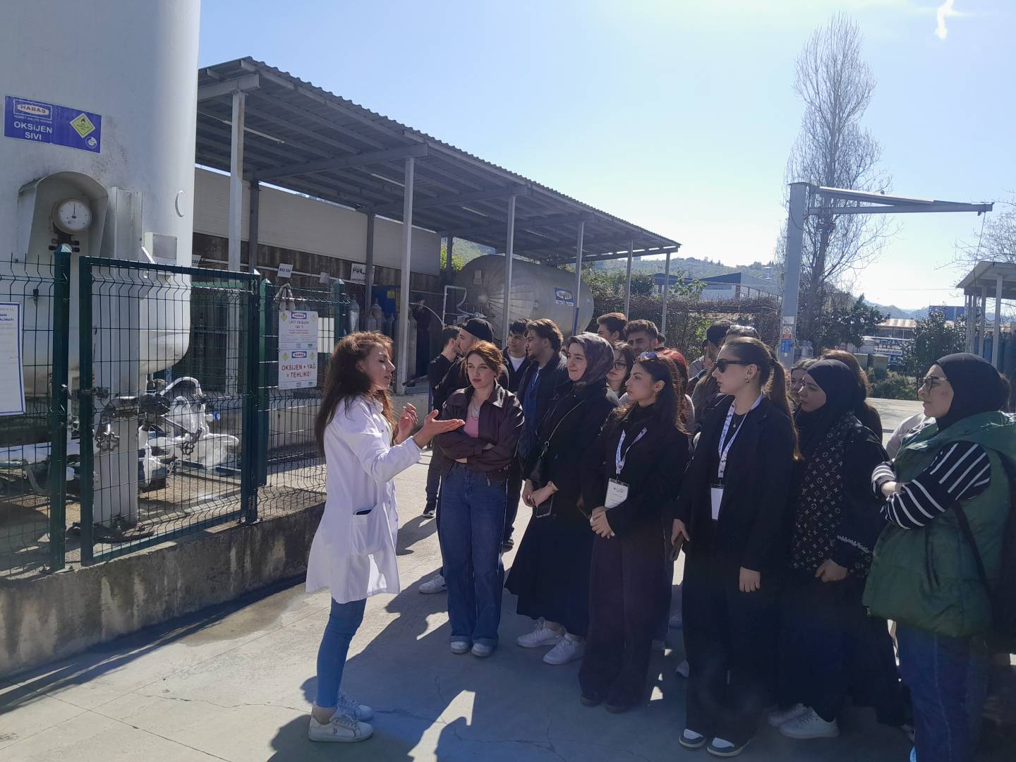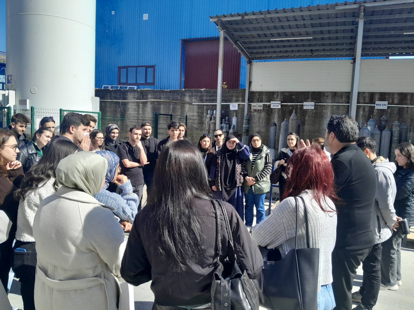 Gezinin ilk durağı Erkuloğlu Oksijen firması oldu. Burada öğrencilere, endüstriyel gaz üretiminin temel aşamaları hakkında bilgiler aktarıldı. Özellikle oksijen ve karbondioksit gazlarının üretim süreçleri, kullanılan teknolojiler ve güvenli depolama koşulları detaylı biçimde anlatıldı. Firma yetkilileri, gazların farklı sektörlerdeki kullanım alanlarına da değinerek teorik bilgilerin pratikteki karşılıklarını örneklerle açıkladı.