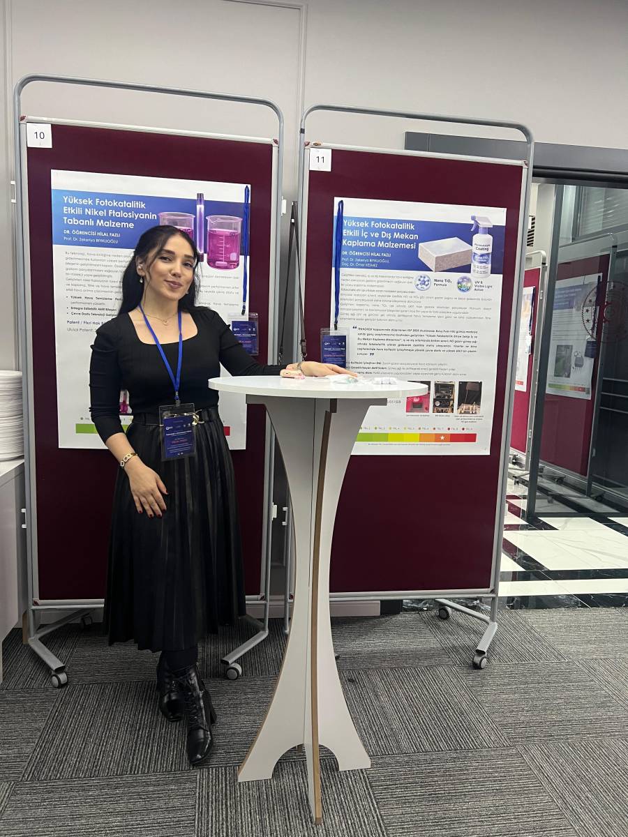 Sunumu Yapan: Hilal Fazlı. Patent Adı: Yüksek Fotokatalitik Etkili Nikel Ftalosiyanin Tabanlı Malzeme. Buluşçular: Hilal Fazlı, Prof. Dr. Zekeriya Bıyıklıoğlu.