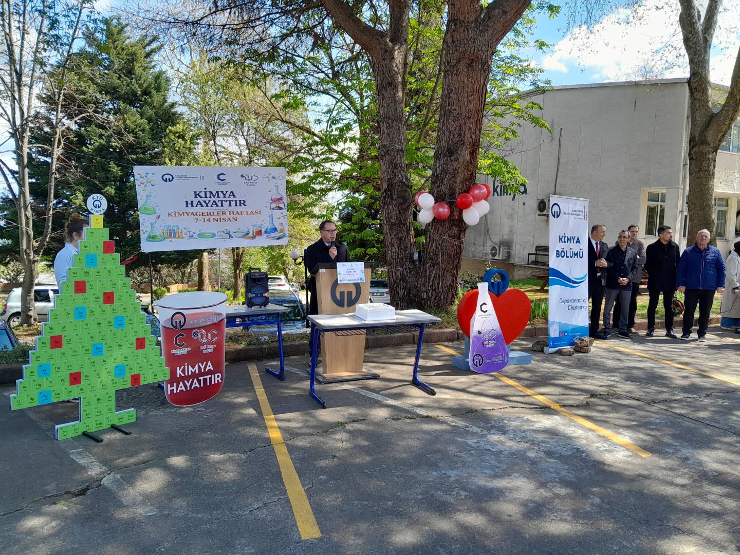 Şenlik alanında gerçekleştirilen açılış programı, protokol konuşmalarıyla devam etti. İlk olarak bölüm başkanımız Prof. Dr. Sedat Keleş söz alarak kimya biliminin önemine ve bu tür etkinliklerin akademik dayanışmaya katkısına değindi. Ardından Fen Fakültesi Dekanımız Prof. Dr. Ali Osman Beldüz konuşmasını gerçekleştirerek öğrenciler ve akademisyenler arasındaki etkileşimin güçlenmesinden duyduğu memnuniyeti dile getirdi.