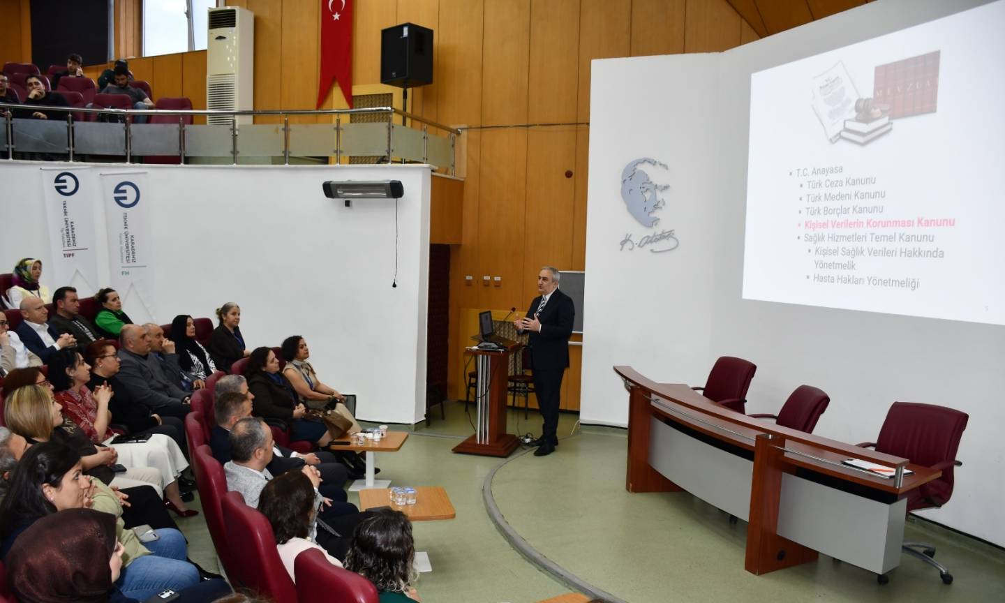 Farabi Hastanesi Başhekimliği tarafından düzenlenen "Kişisel Verilerin Korunması: Güncel Gelişmeler, Kurumsal ve Bireysel Düzeyde Alınması Gereken Tedbirler" başlıklı etkinlik, Aydın İnal Amfisi’nde yoğun bir katılımla gerçekleştirildi. Sağlık çalışanlarının büyük ilgi gösterdiği etkinlikte, dijitalleşen sağlık dünyasında veri güvenliğinin hayati önemi vurgulandı.